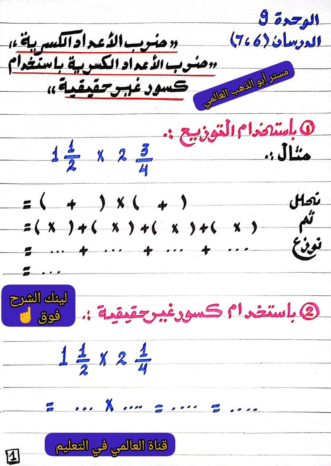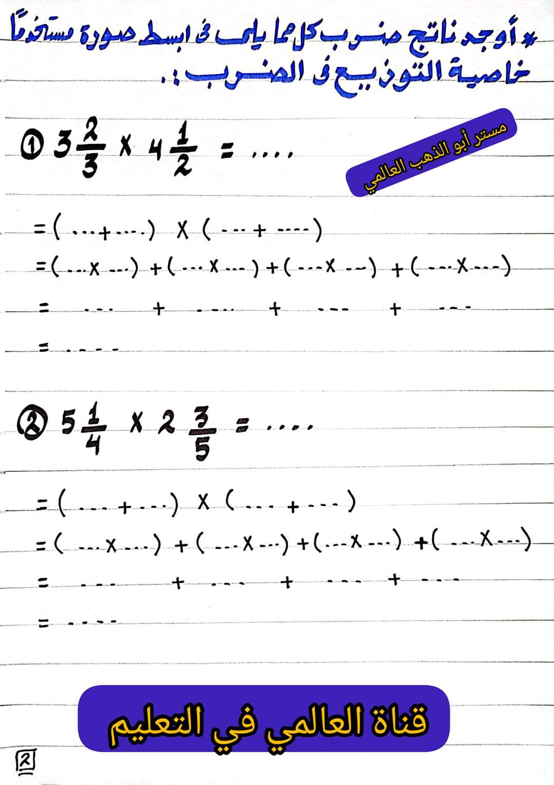 درس ضرب الاعداد الكسرية باستخدام كسور حقيقية وبالتوزيع للصف الخامس الابتدائي الترم الثاني 2023