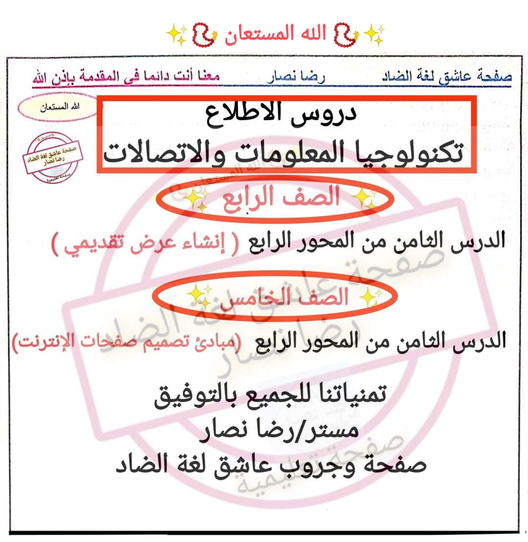 دروس الاطلاع في تكنولوجيا المعلومات للصفين الرابع والخامس الابتدائي الترم الثاني 2023