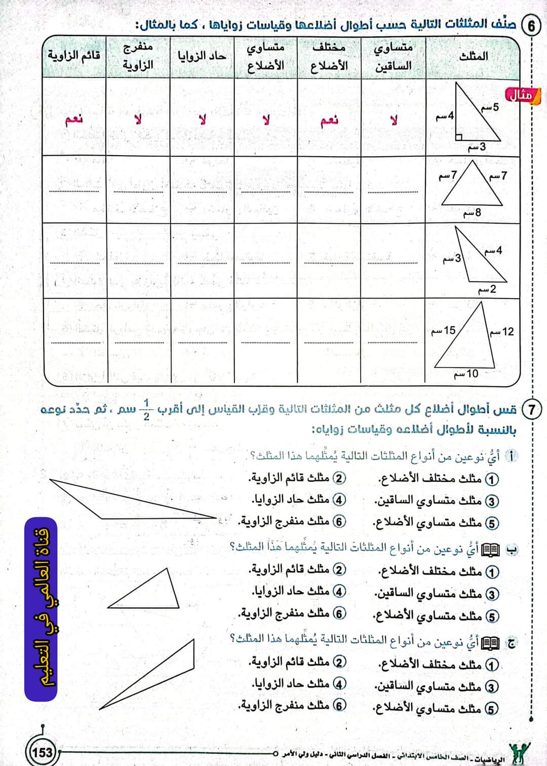 تحميل شرح درس مثلثات متنوعة للصف الخامس الابتدائي الترم الثاني 2023