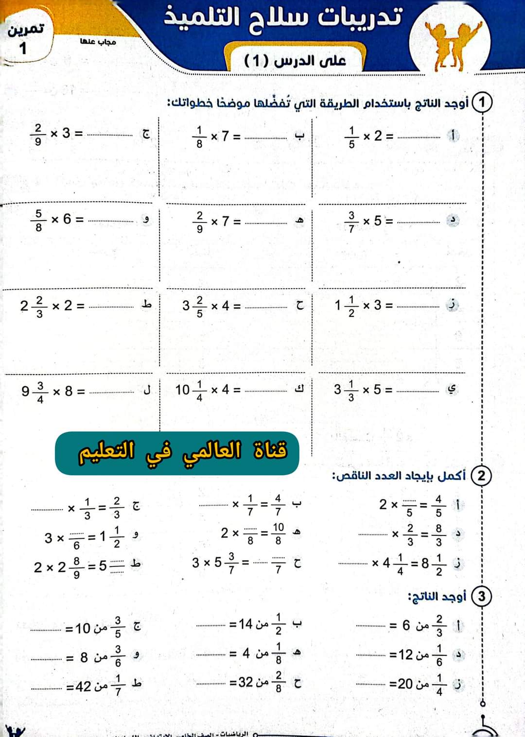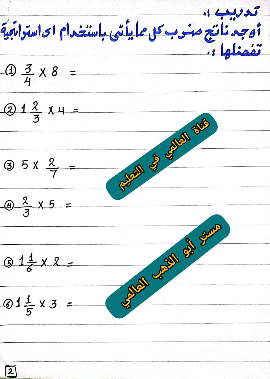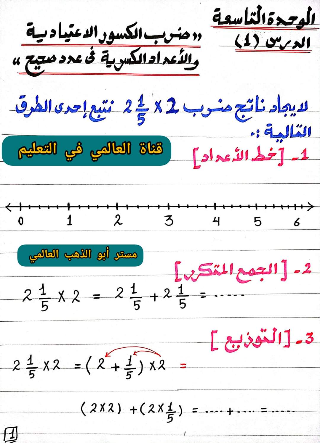 شرح ضرب الكسور الاعتيادية والأعداد الكسرية في عدد صحيح الوحدة التاسعة الدرس الاول رياضيات خامسة ابتدائي الترم الثاني 2023
