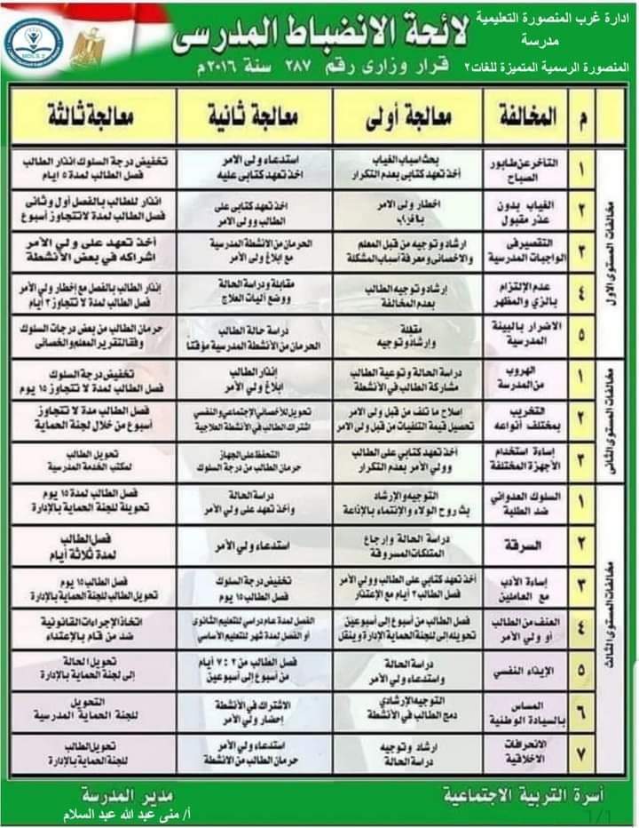 قواعد تطبيق لائحة الإنضباط المدرسي على الطلاب