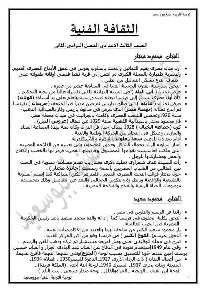 تحميل مذكرة التربية الفنية والثقافية الصف الثالث الاعدادي الترم الثاني 2023