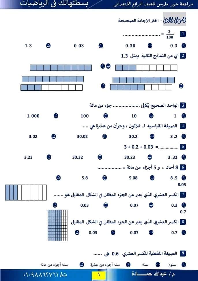 مذكرة مراجعة الرياضيات للصف الرابع الابتدائي الترم الثاني 2023