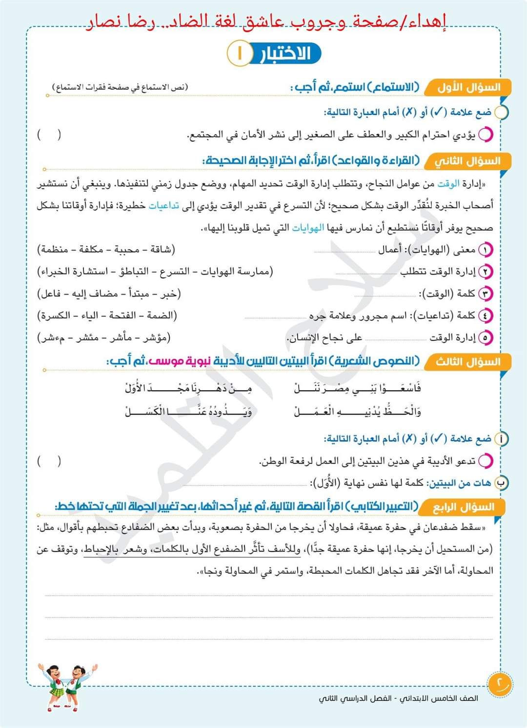 تحميل مراجعات شهر مارس من سلاح التلميذ للصف الخامس الابتدائي الترم الثاني 2023