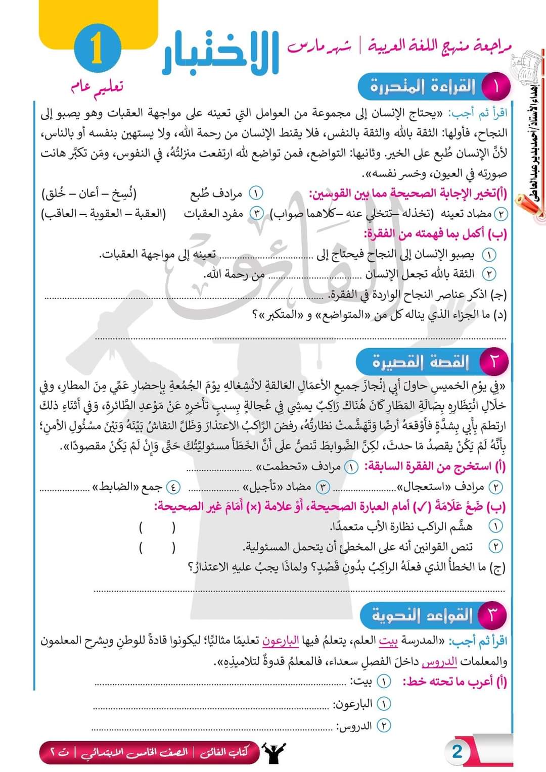 مراجعة الفائق لغة عربية (شهر مارس) للصف الخامس