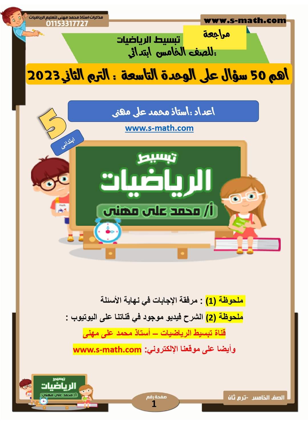 تحميل مراجعة الوحدة التاسعة رياضيات خامسة ابتدائي الترم الثاني 2023