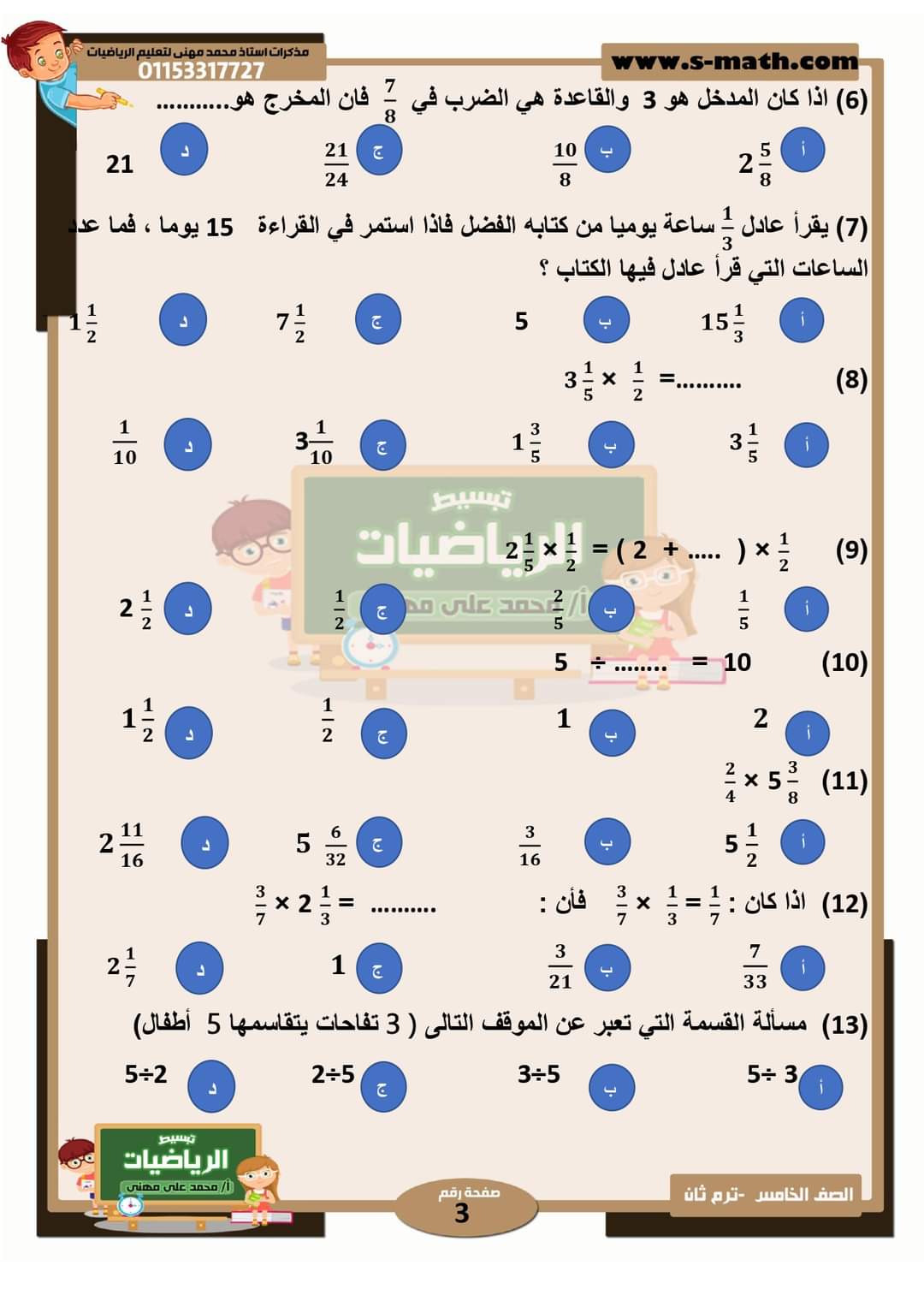 اليوم موعدنا مع مراجعة تبسيط الرياضيات على الوحدة التاسعة للاستاذ محمد على مهنى والتى تشمل مفهومين الاول وهو :ضرب الكسور الاعتيادية والأعداد الكسرية والمفهوم الثانى : عمليات قسمة تتضمن اعدادا صحيحة وكسور وحدة