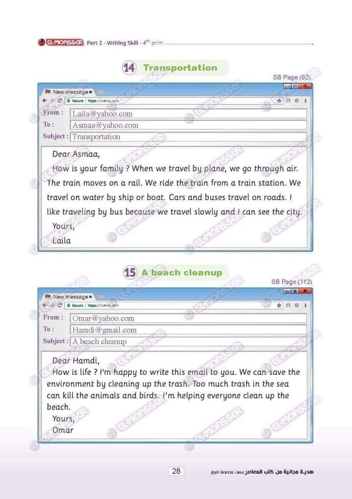تحميل مراجعة سؤال ال writing وال blog و البراجراف والايميل الصف الخامس الترم الثاني 2023 من كتاب المعاصر