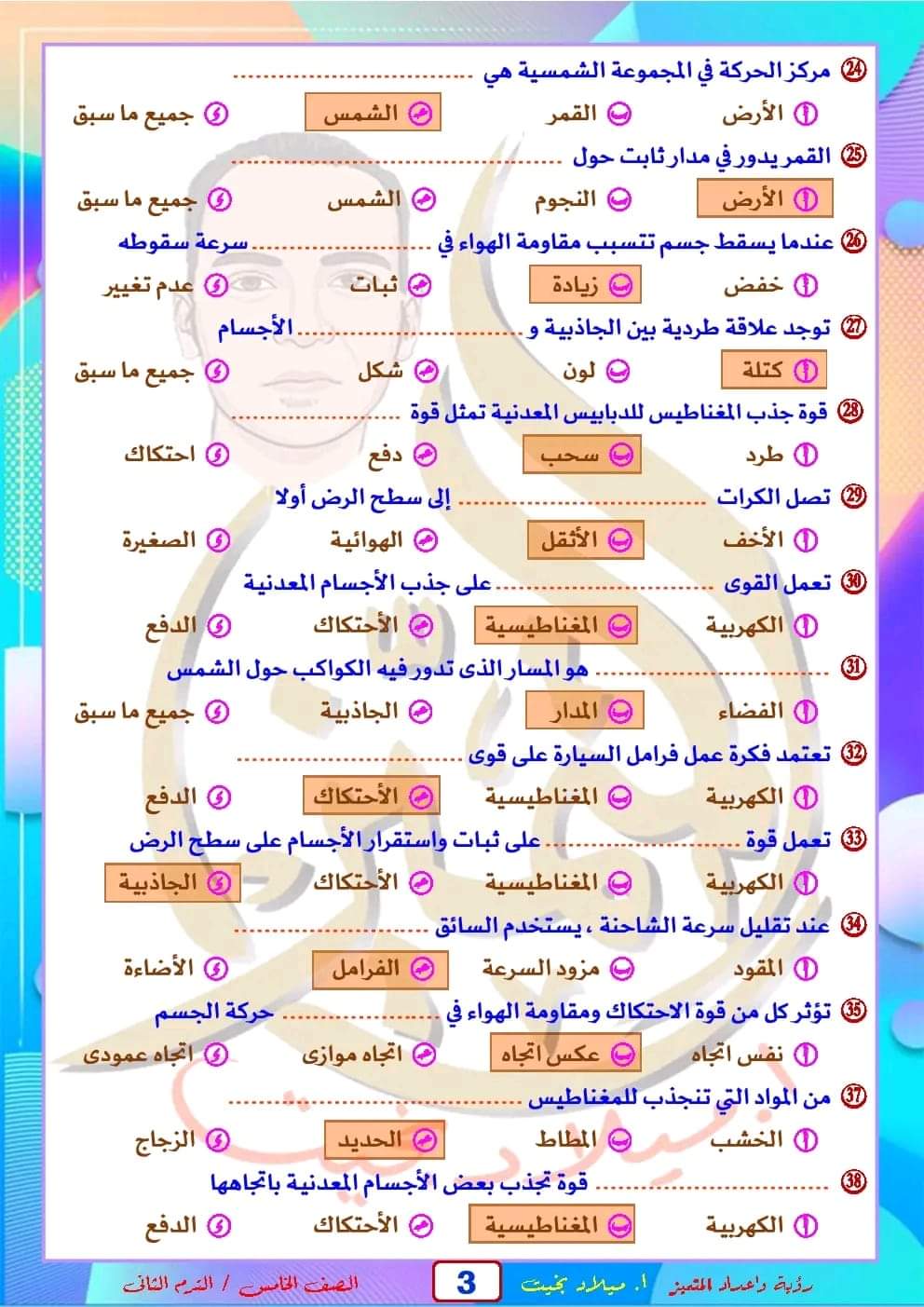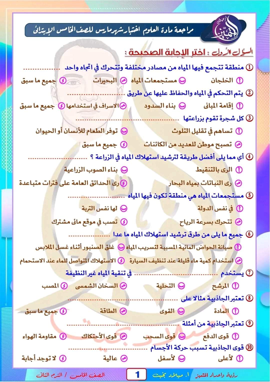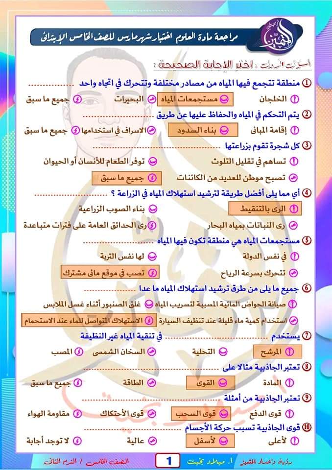 تحميل مراجعة شهر مارس بالاجابات علوم خامسة ابتدائي 2023