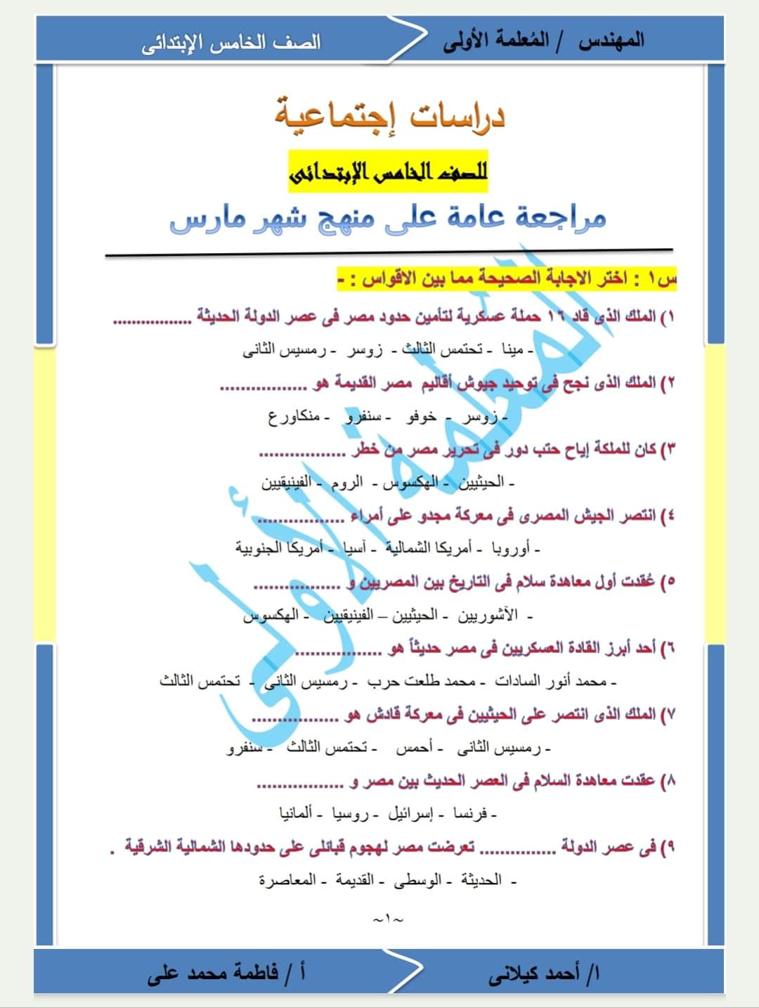 تحميل مراجعة شهر مارس دراسات اجتماعية خامسة ابتدائي 2023
