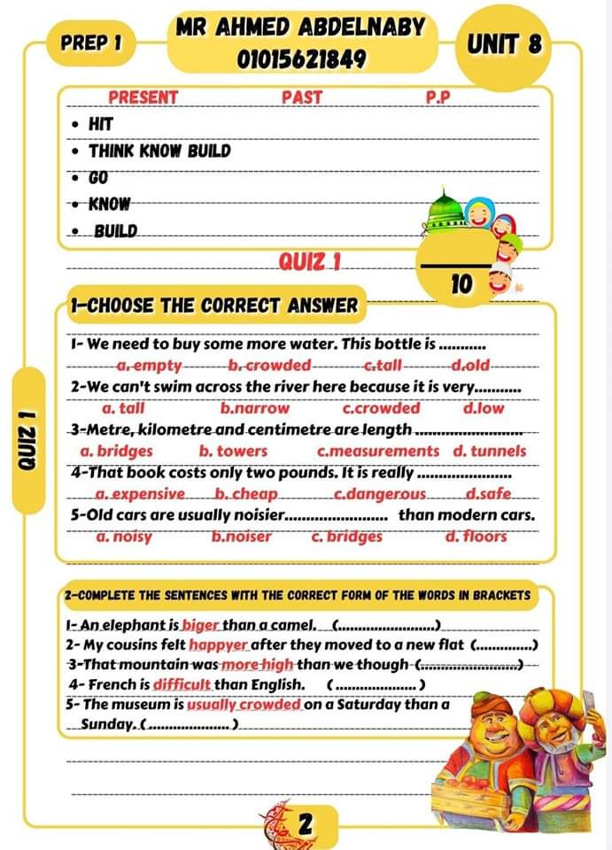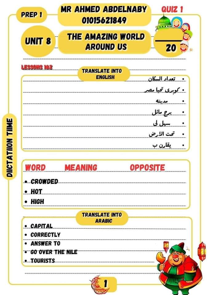 بالاضافه الي 10 أسئلة على الجرامر والكلمات لكل درس