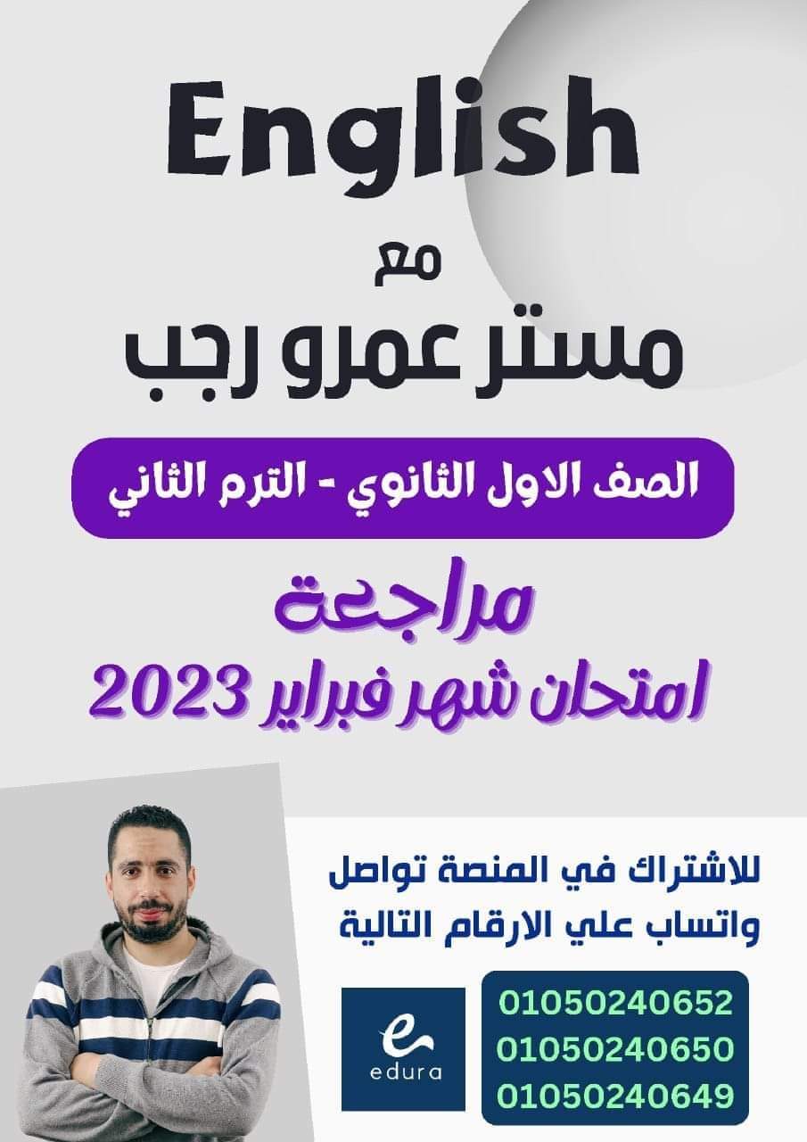 تحميل مراجعة لغة انجليزية الصف الاول الثانوي مقرر فبراير بالاجابات