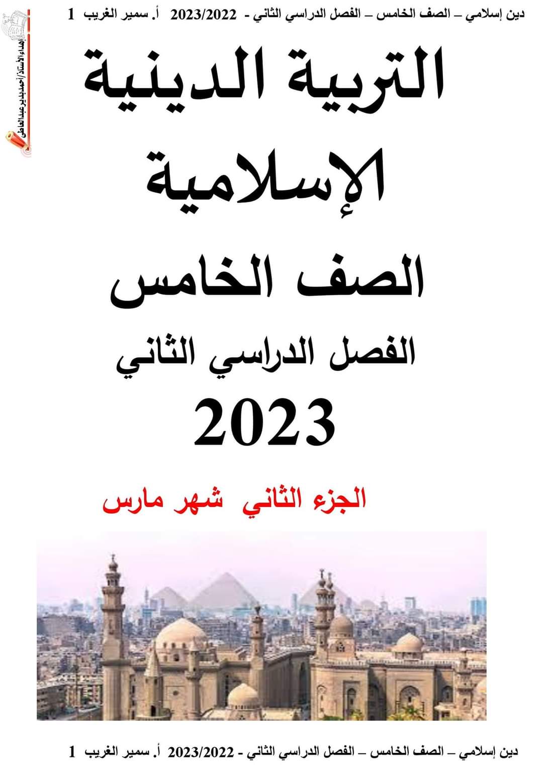مقرر مارس ( تربية إسلامية ) للصف الخامس ترم ثان ٢٠٢٣