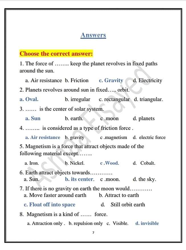 تحميل مراجعة مقرر مارس ساينس science الصف الخامس الابتدائي بالاجابات