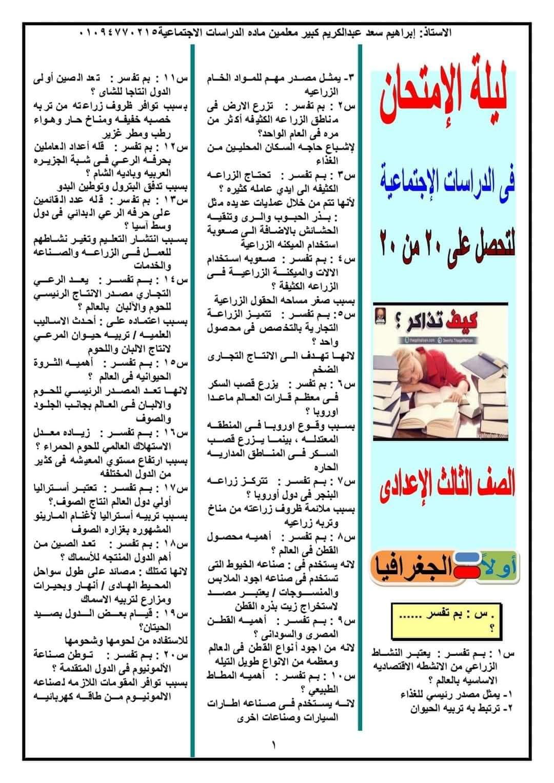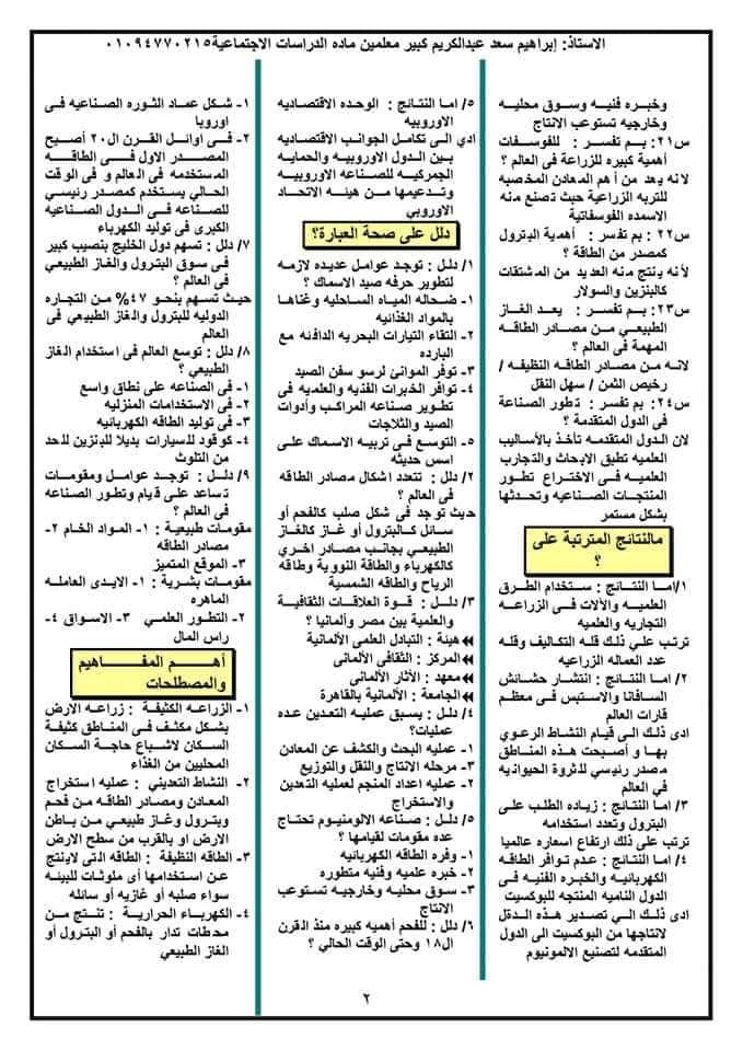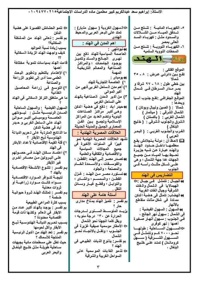 مراجعة ممتازة دراسات الصف الثالث الاعدادي الترم الثاني 2023