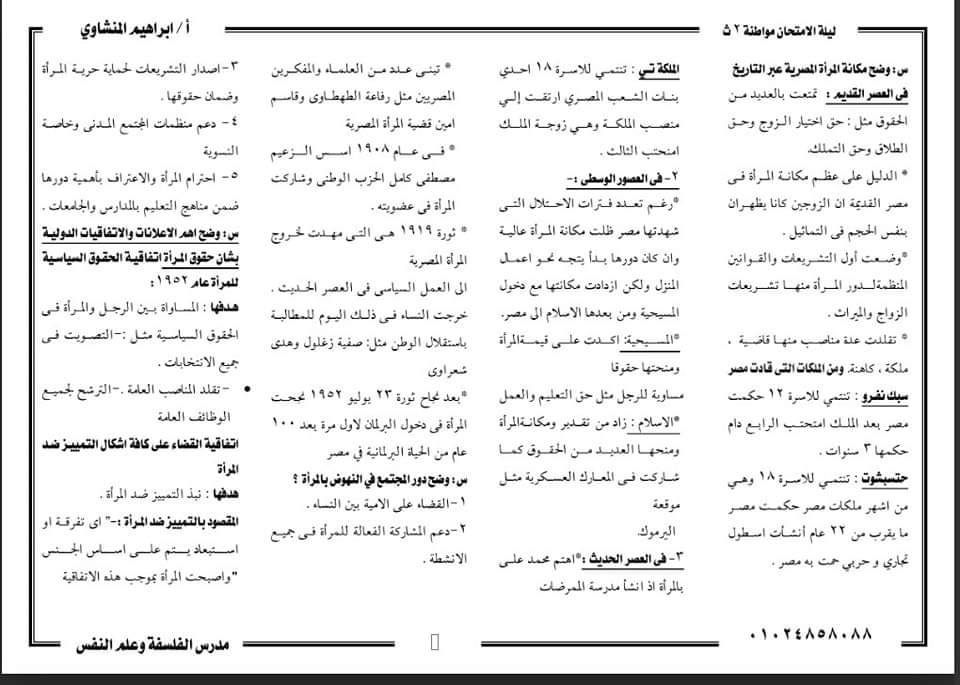 تحميل المراجعة النهائية مادة المواطنة و حقوق الانسام للصف الثالث الثانوي 2023