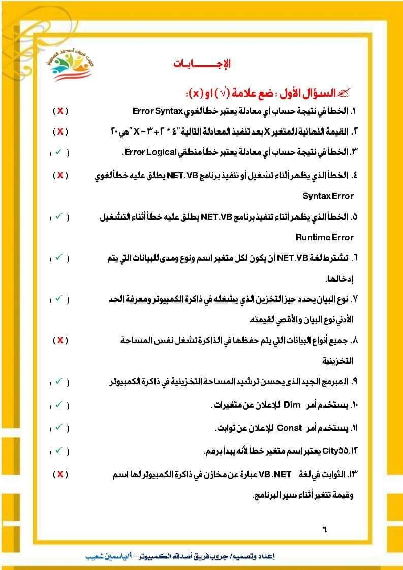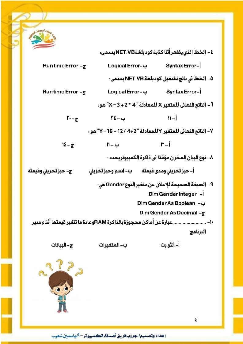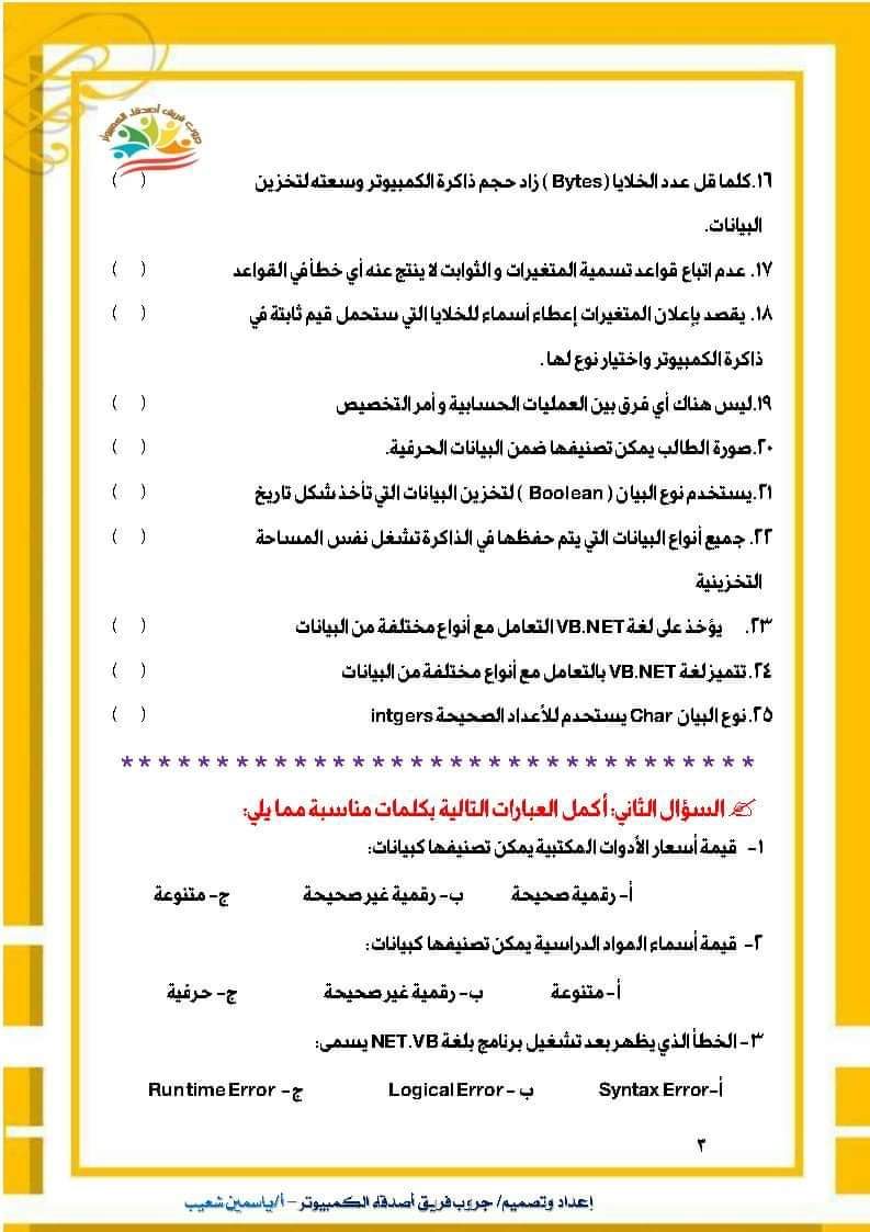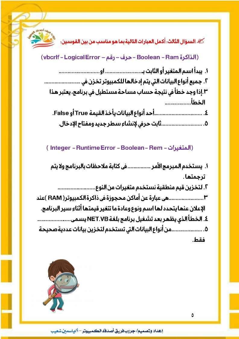 تحميل مذكرة مراجعه كمبيوتر الصف الثالث الاعدادي الترم الثاني 2023 بالإجابات