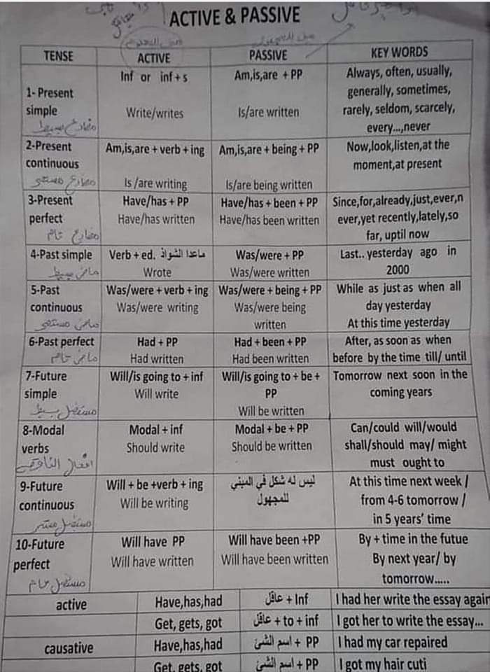 تحميل ملخص الازمنة للصف الثالث الثانوي في ورقة واحدة