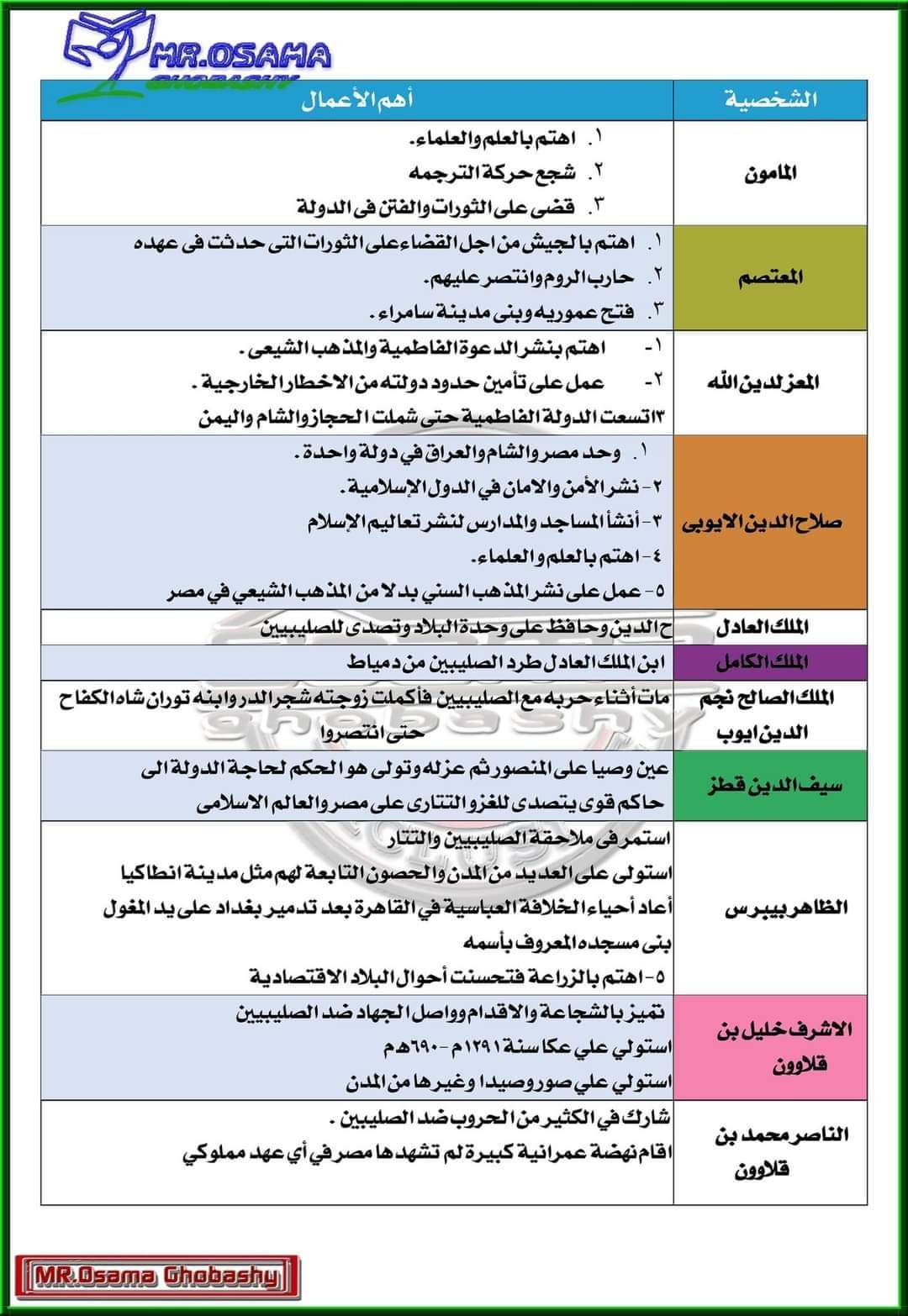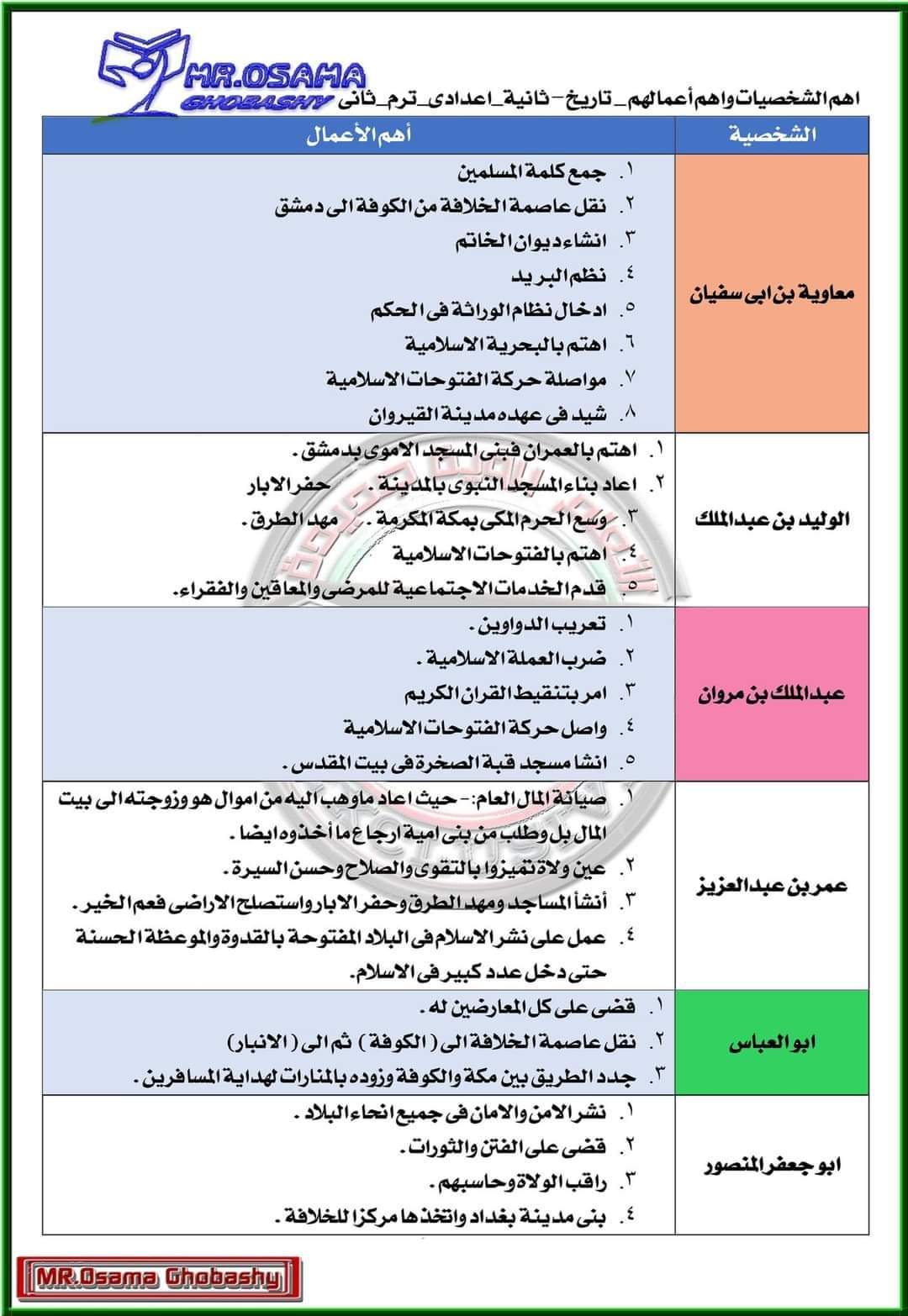 ملخص اهم الشخصيات للصف الثاني الإعدادي الترم الثاني