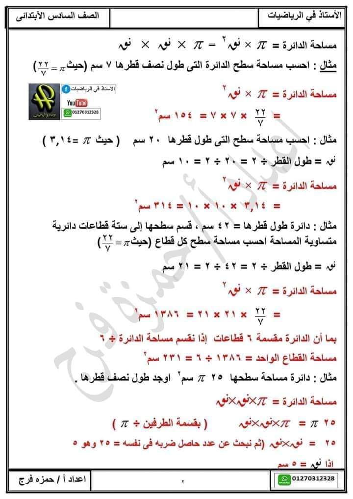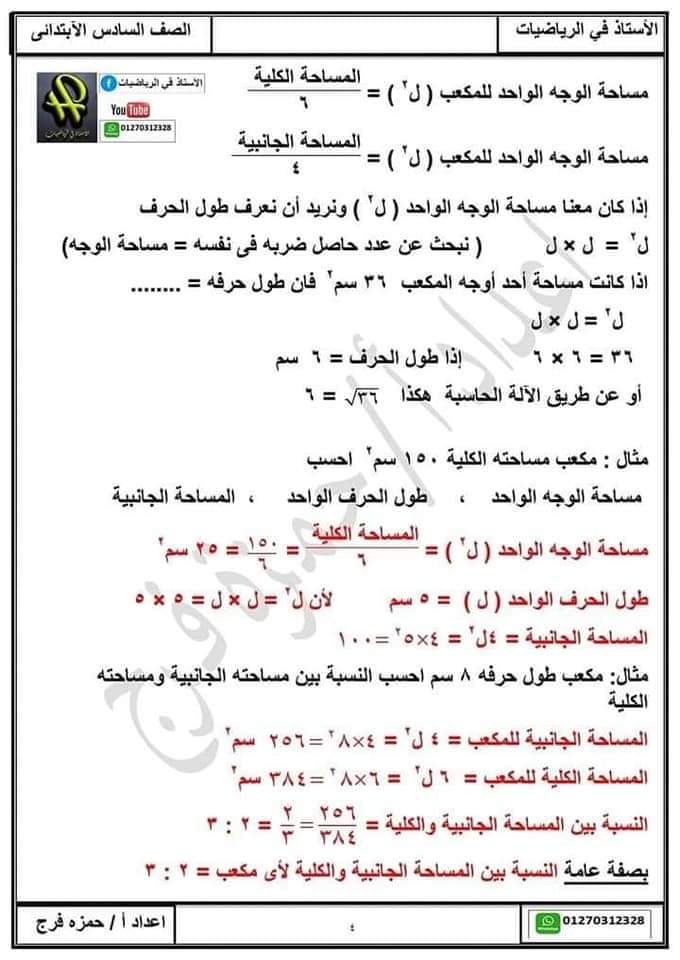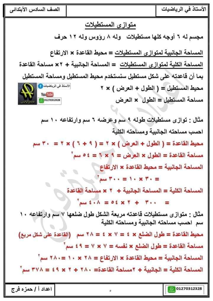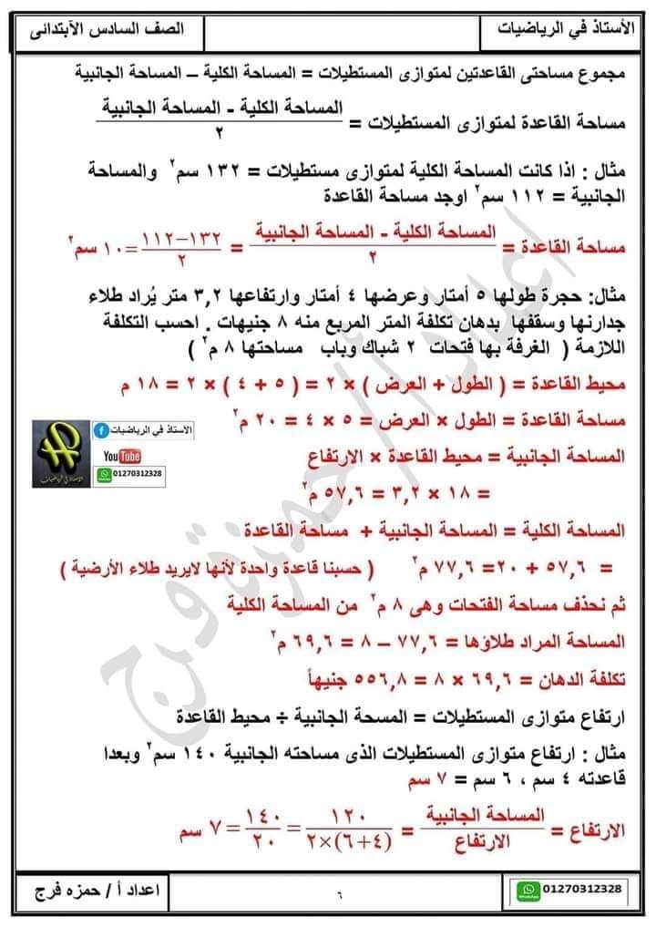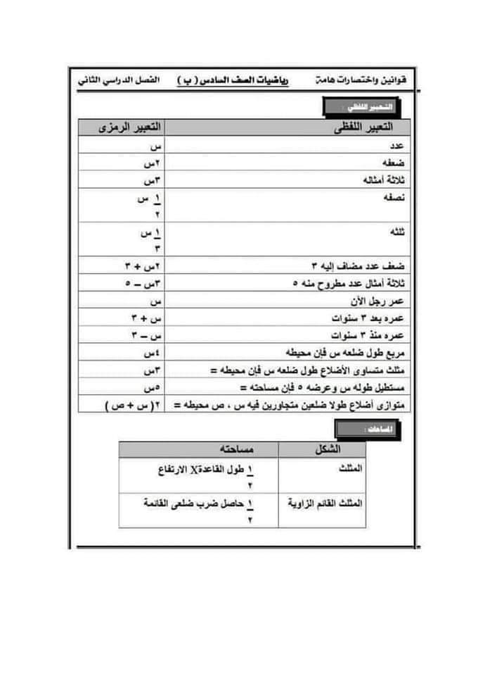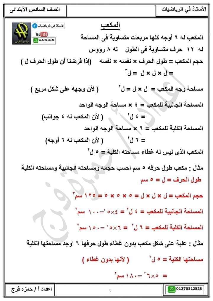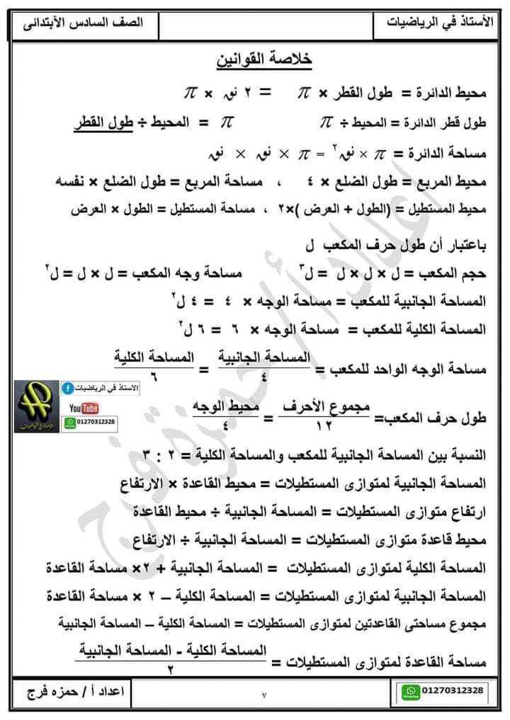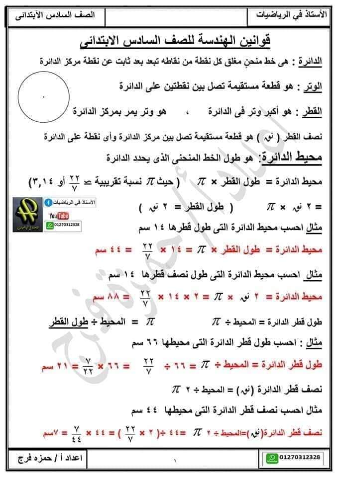 تحميل ملخص قوانين الهندسة للصف السادس الابتدائي