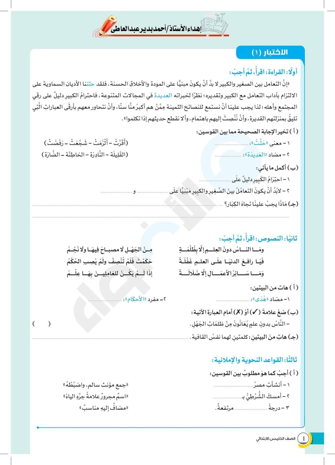 نماذج اختبارات الأضواء مقرر مارس للصف الخامس 5️⃣ بالإجابة