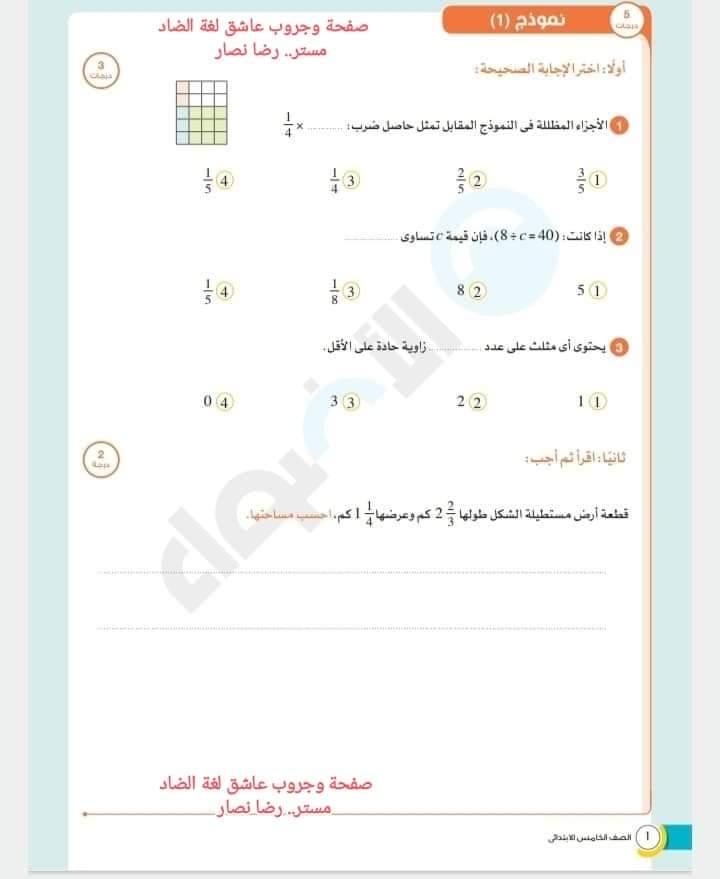 تحميل نماذج الأضواء لشهر مارس رياضيات للصف الخامس الابتدائي