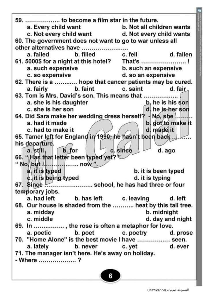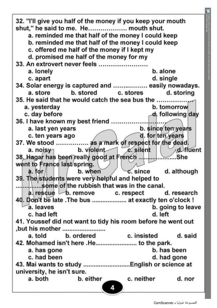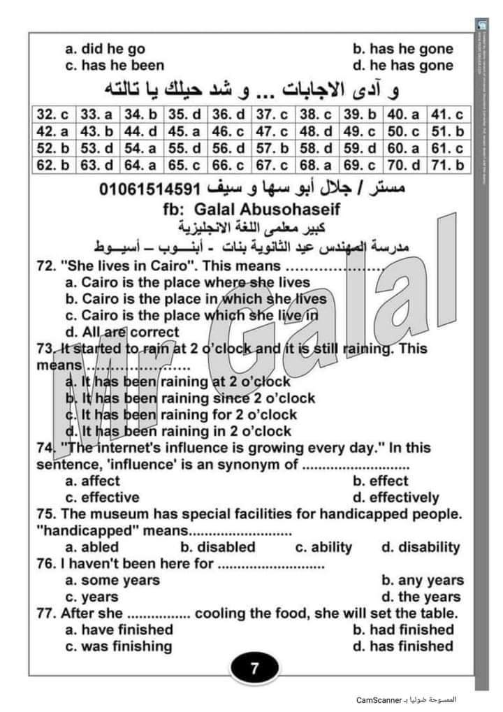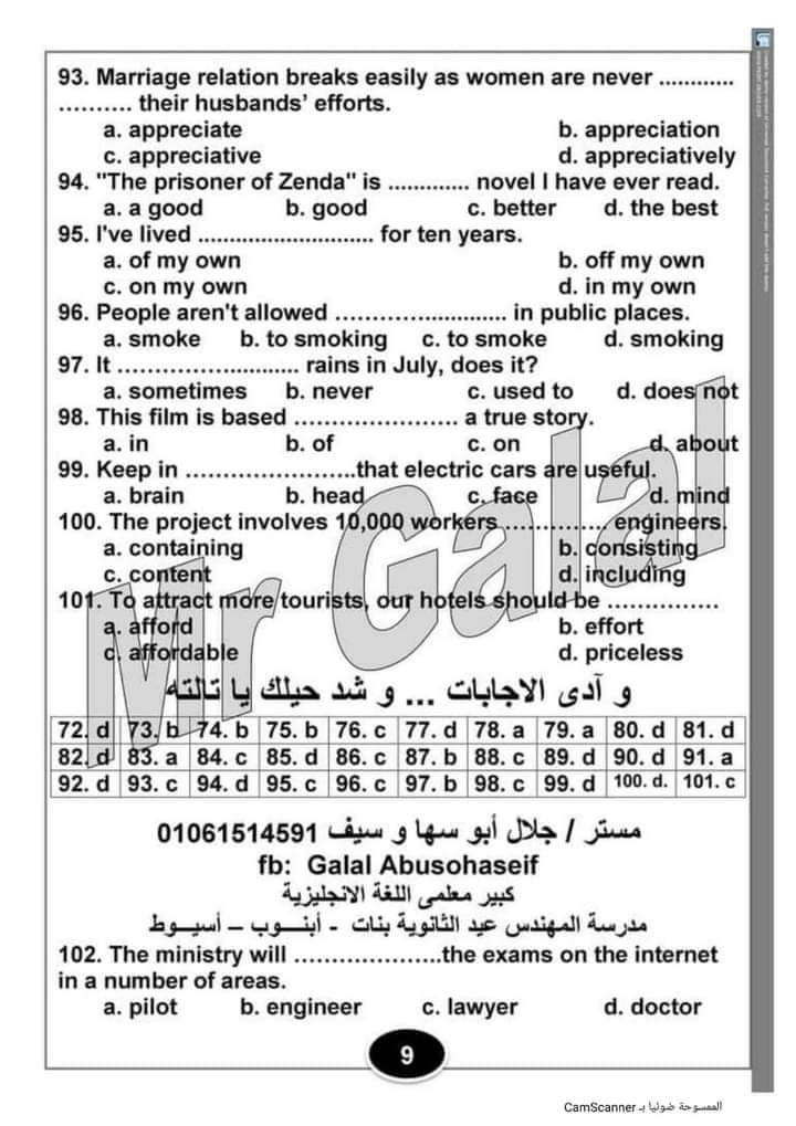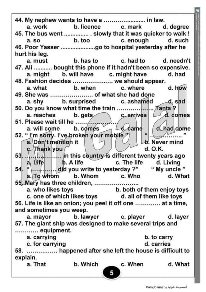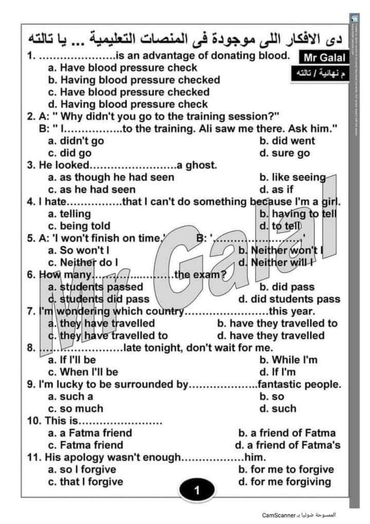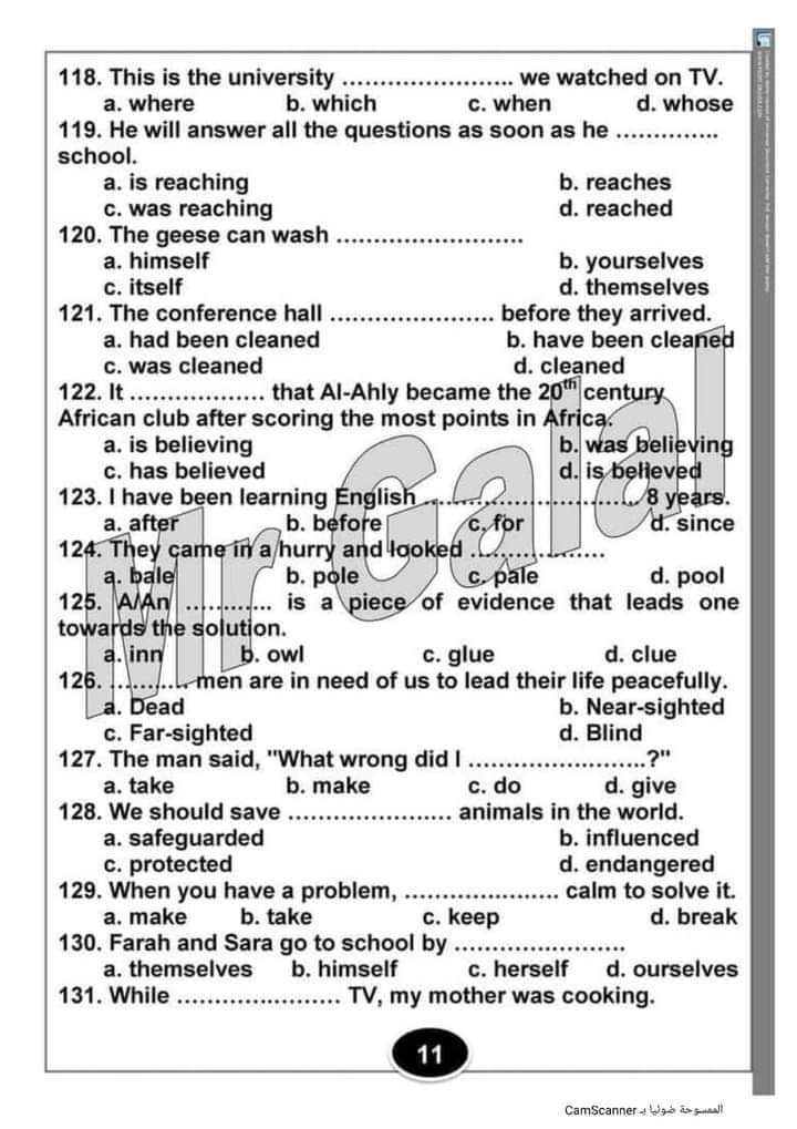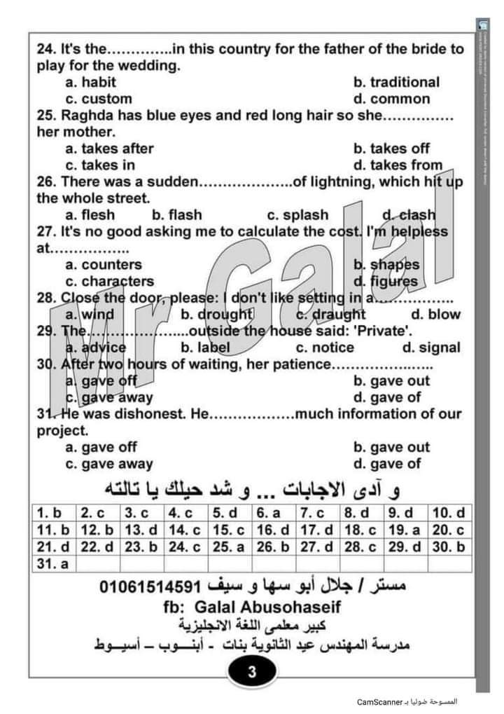 تحميل 135 سؤال في اللغة الانجليزية متوقع ثالثة ثانوي من منصة وزارة التربية والتعليم بالاجابات