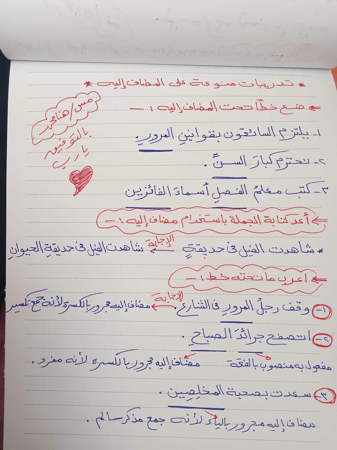 ده شرحي لدرس المضاف إليه للصف الخامس الابتدائي بشكل مبسط جدا + تدريبات متنوعة بالاجابات للتأكيد ،