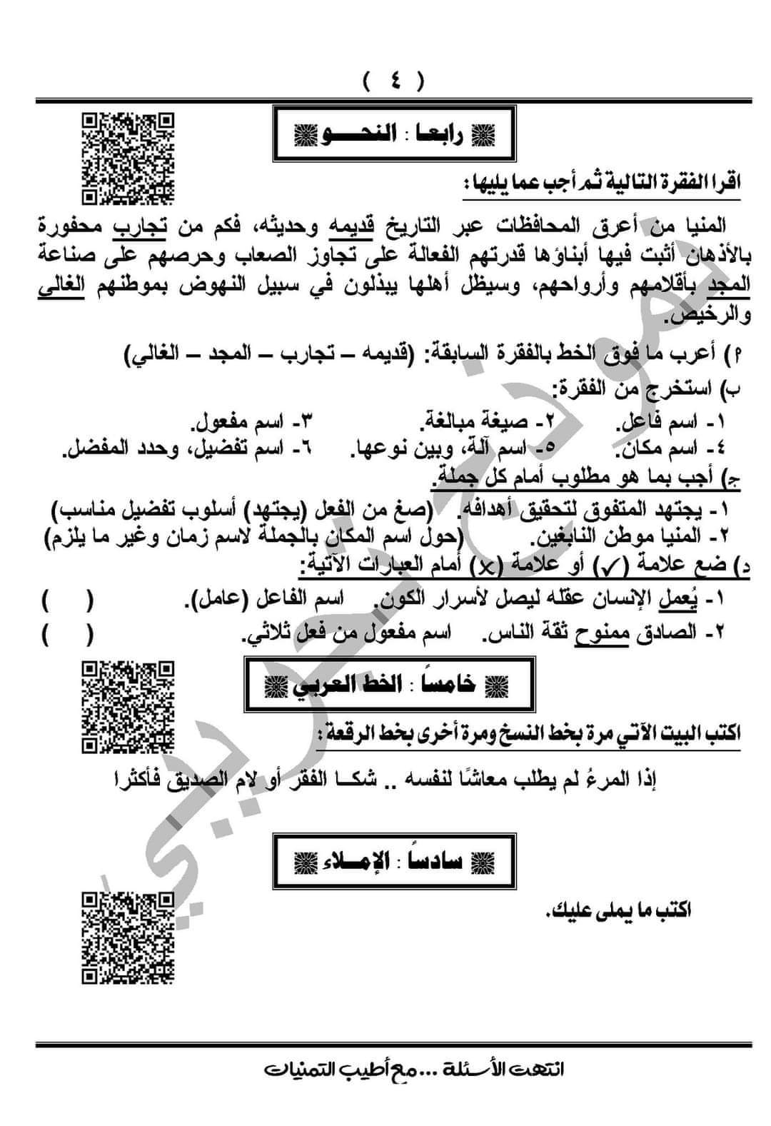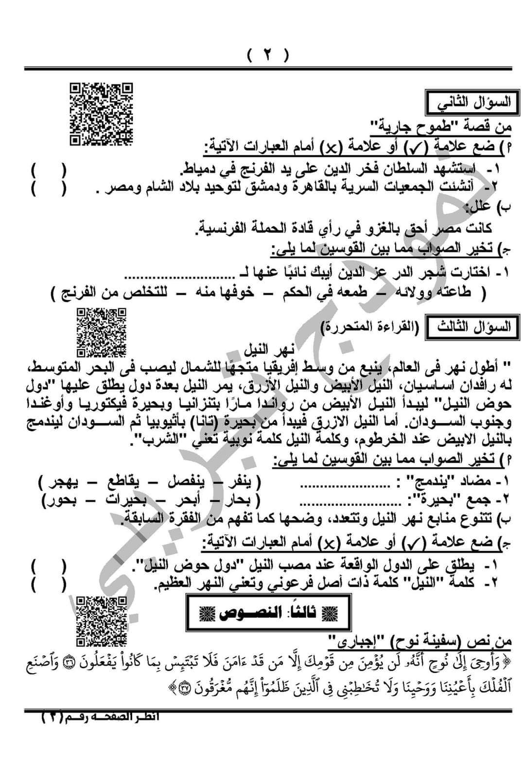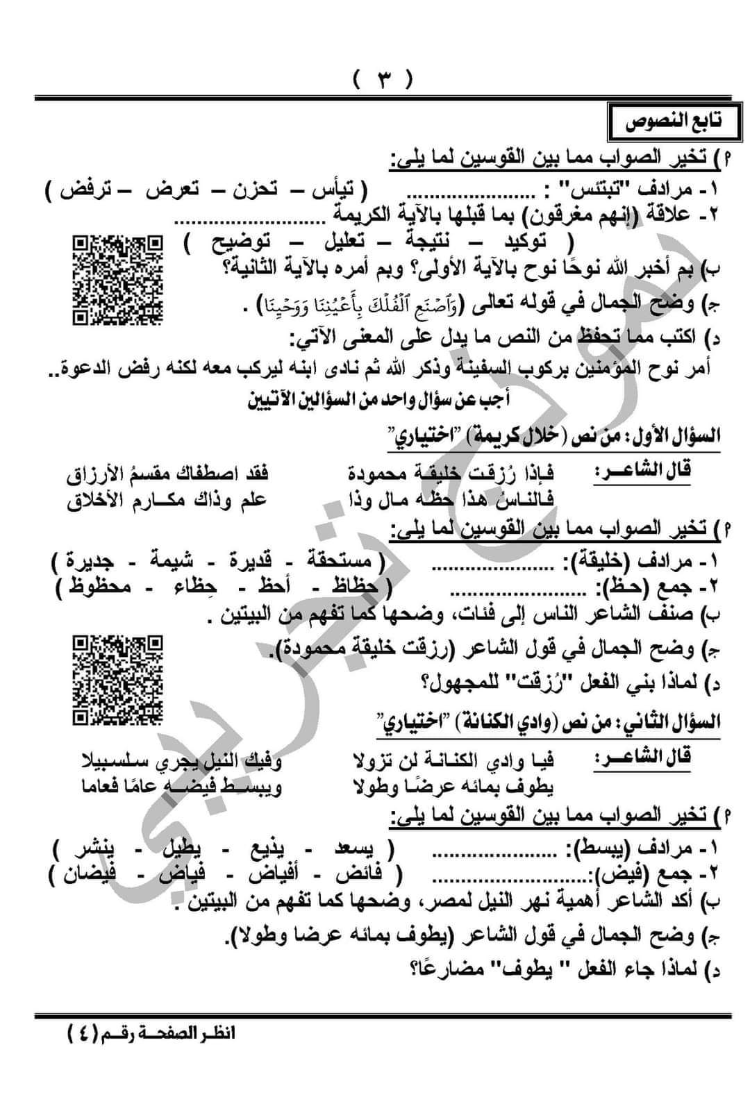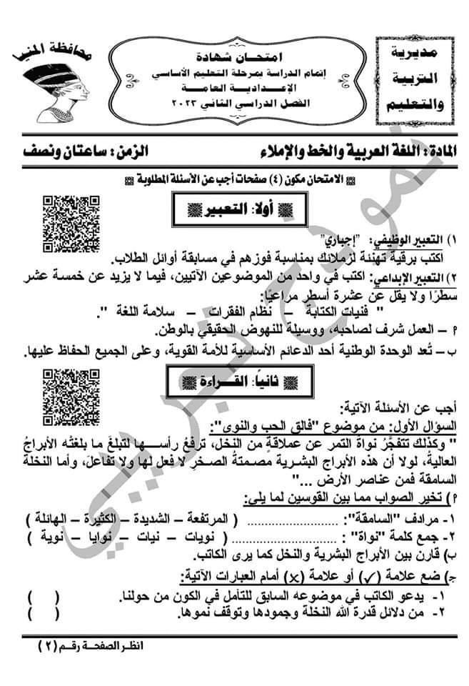 نموذج تجريبي لامتحان اللغة العربية للشهادة الإعدادية