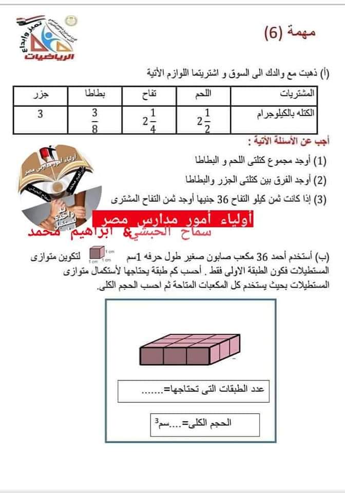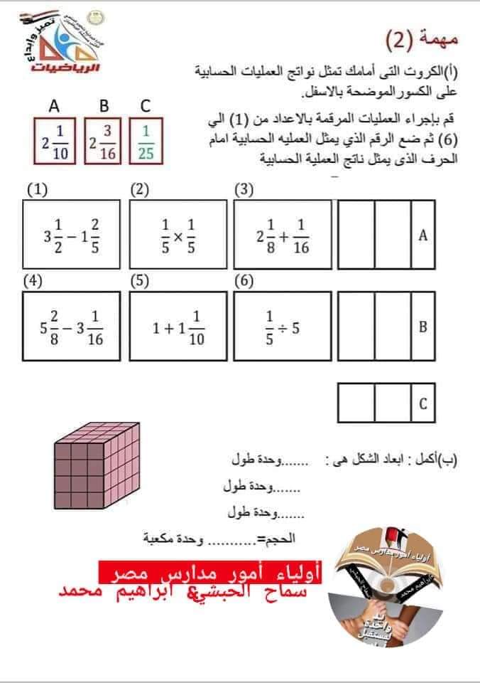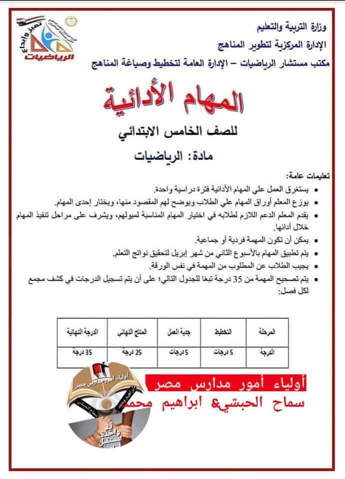تحميل المهام الادائية الرسمية رياضيات خامسة ابتدائي الترم الثاني 2023