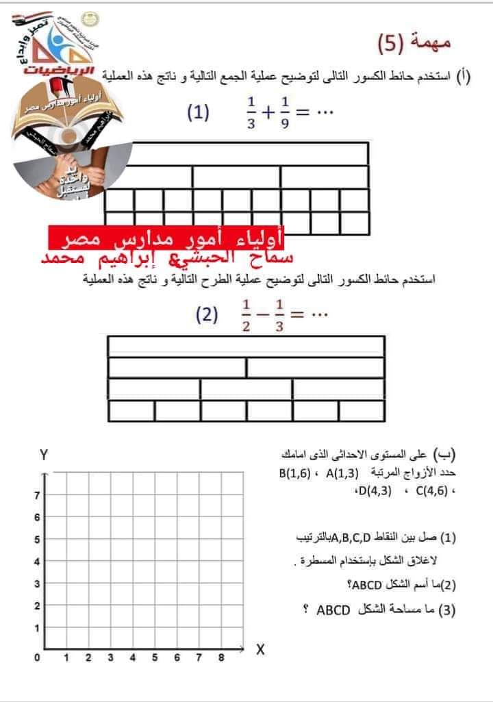 تحميل اجابات المهام الادائية الرسمية رياضيات خامسة ابتدائي الترم الثاني 2023