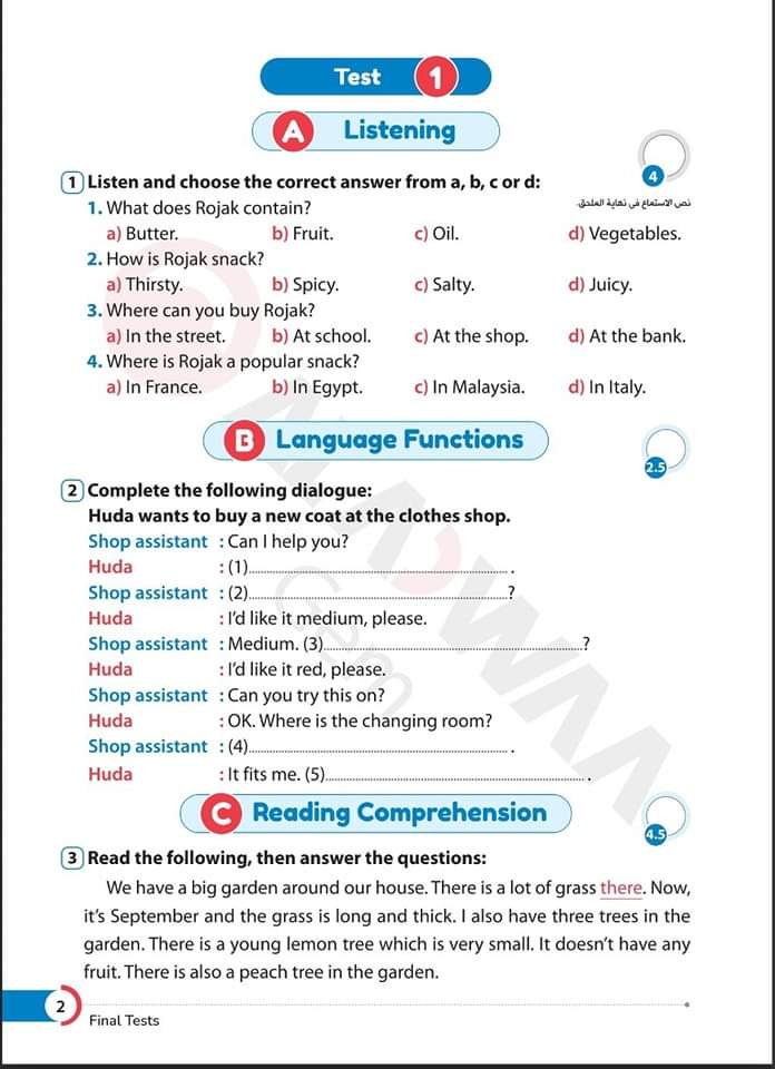 تحميل مراجعة نهائية ليلة الامتحان بالإجابات من كتاب Gem تانية اعدادي
