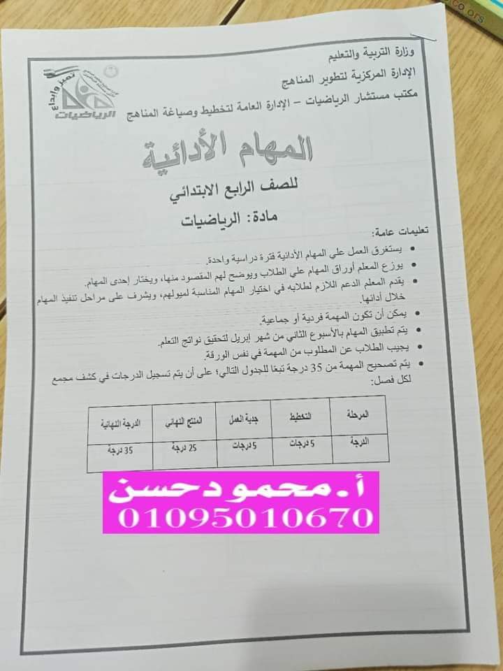 تحميل اجابات المهام الادائيه الرسمية رياضيات للصف الرابع الابتدائي الترم الثاني 2023