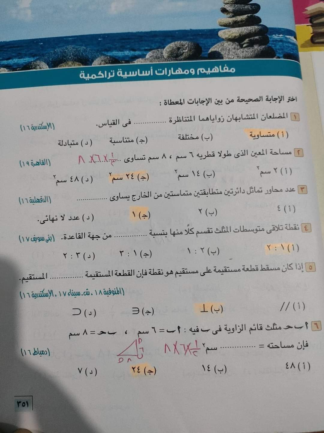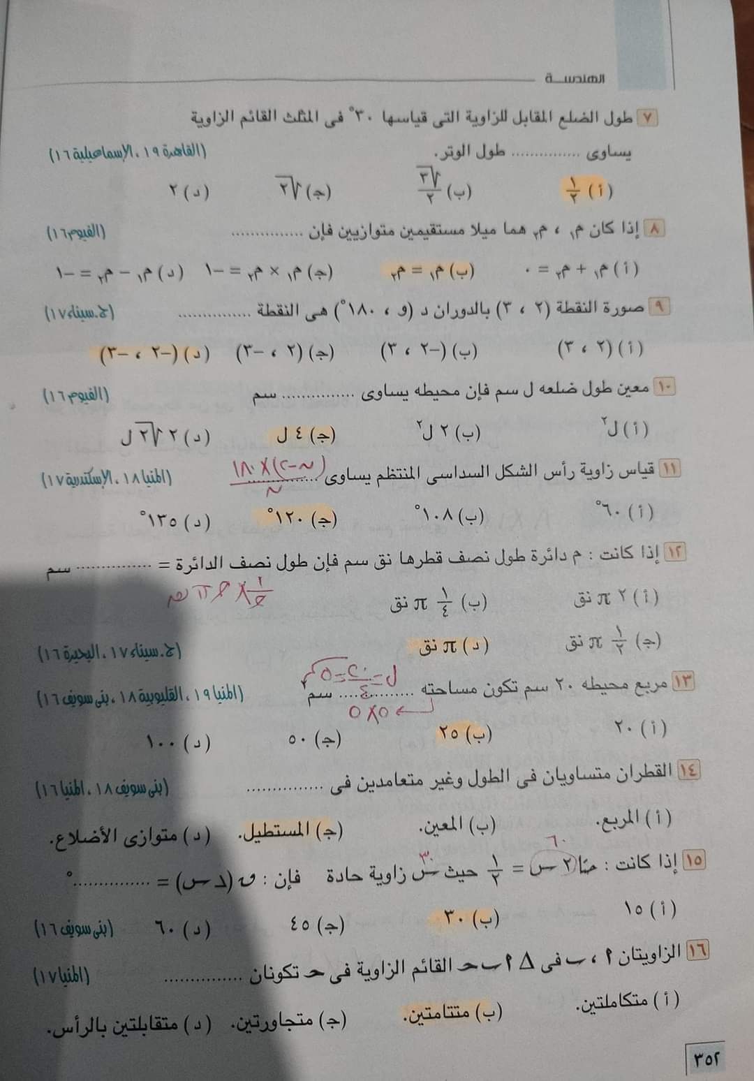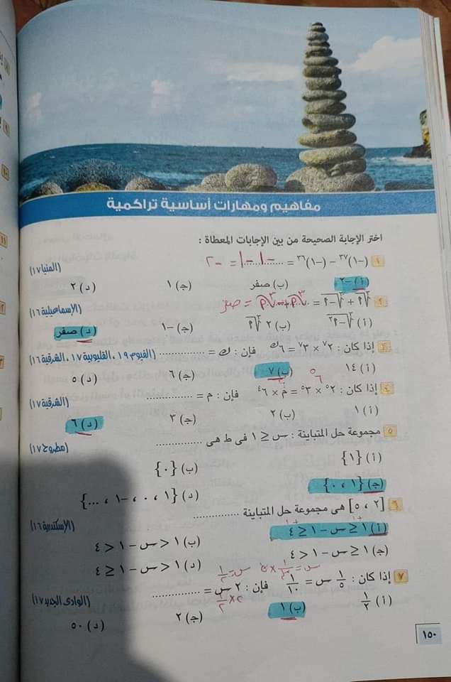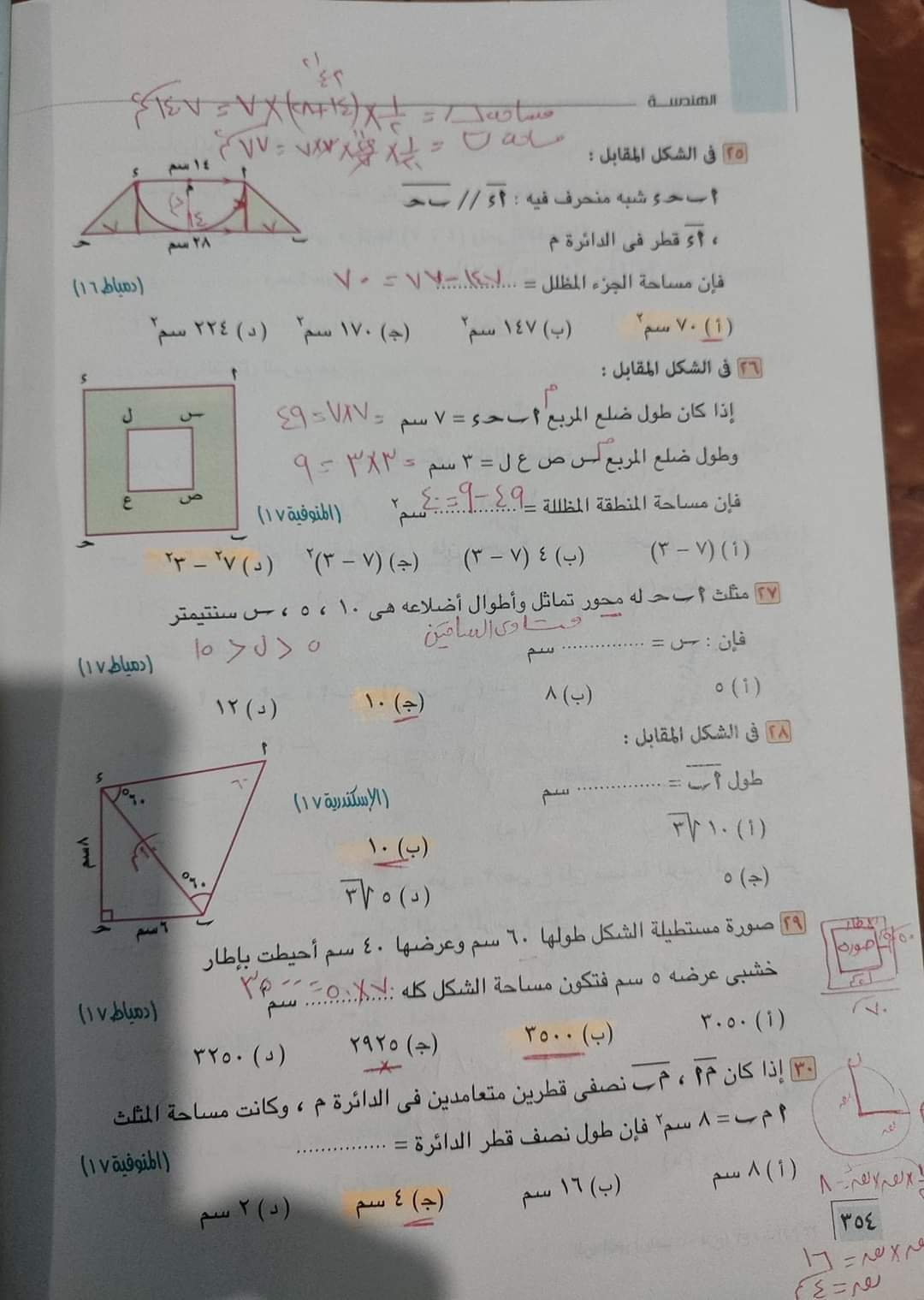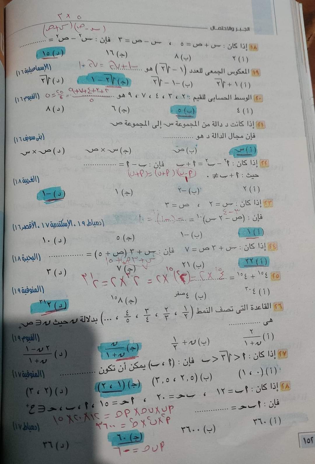 اسئلة تراكمي الجبر والهندسة للصف الثالث الاعدادي الترم الثاني بالاجابات