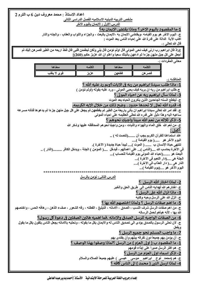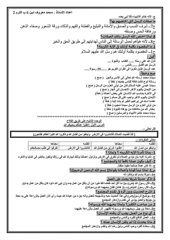 المراجعة النهائية دين للصف السادس – مستر محمد معروف
