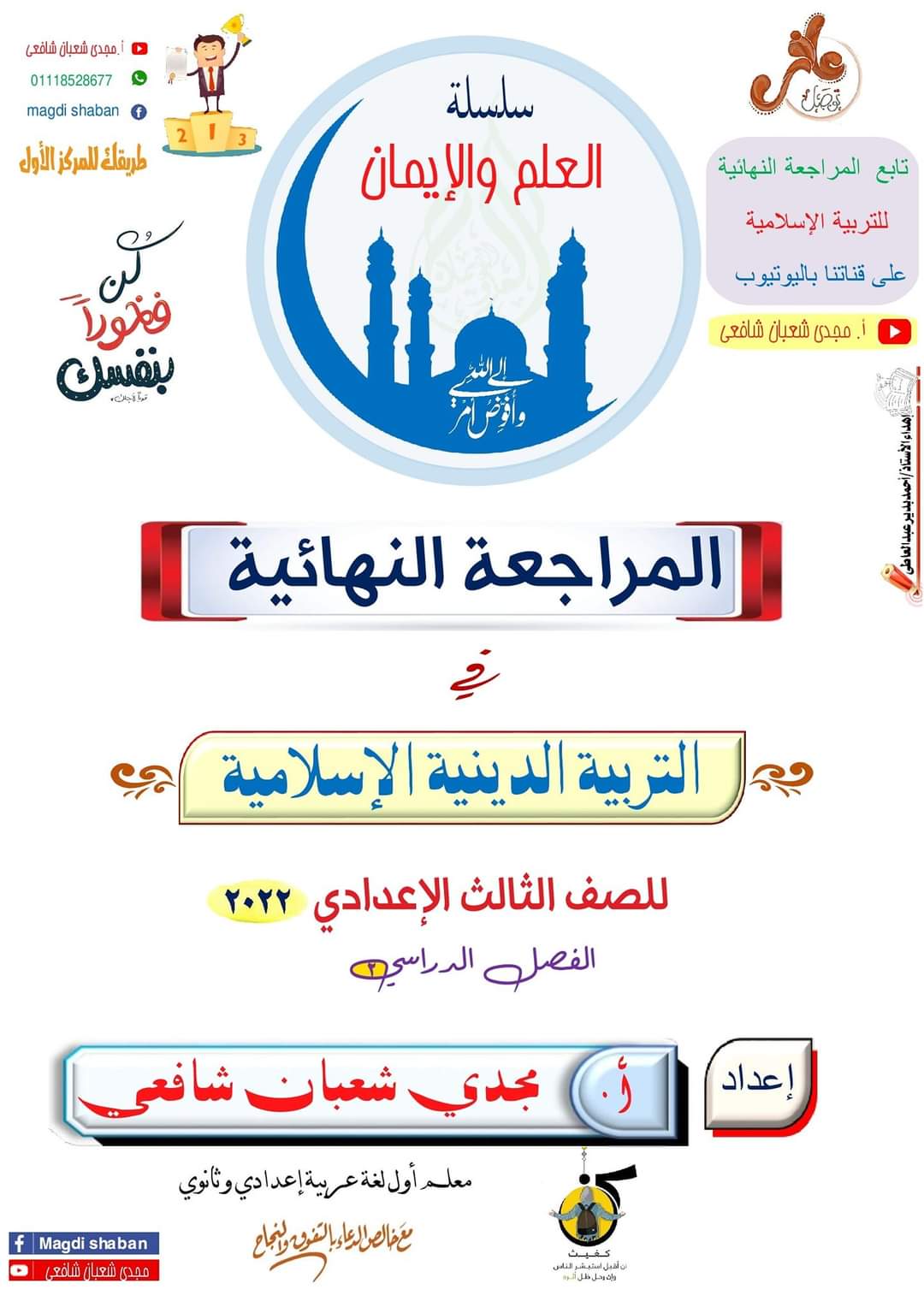 تحميل مذكرة المراجعة النهائية ( دين ) للصف الثالث الإعدادي الترم الثاني إعداد مستر مجدي شعبان