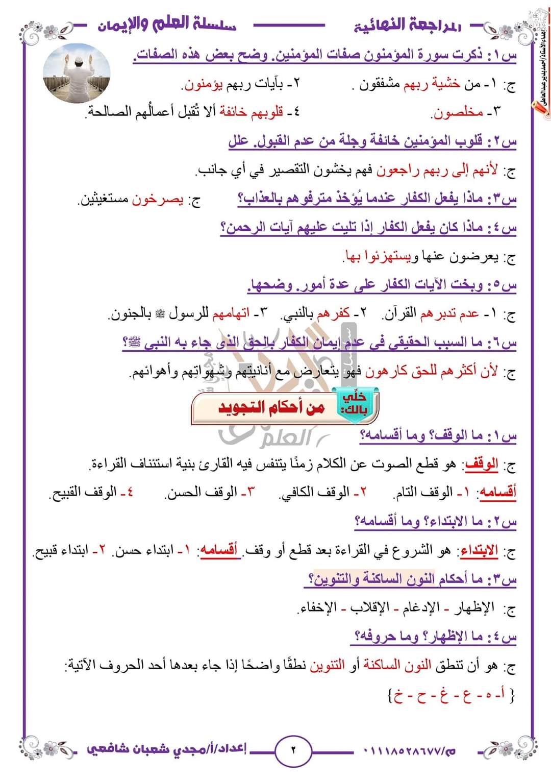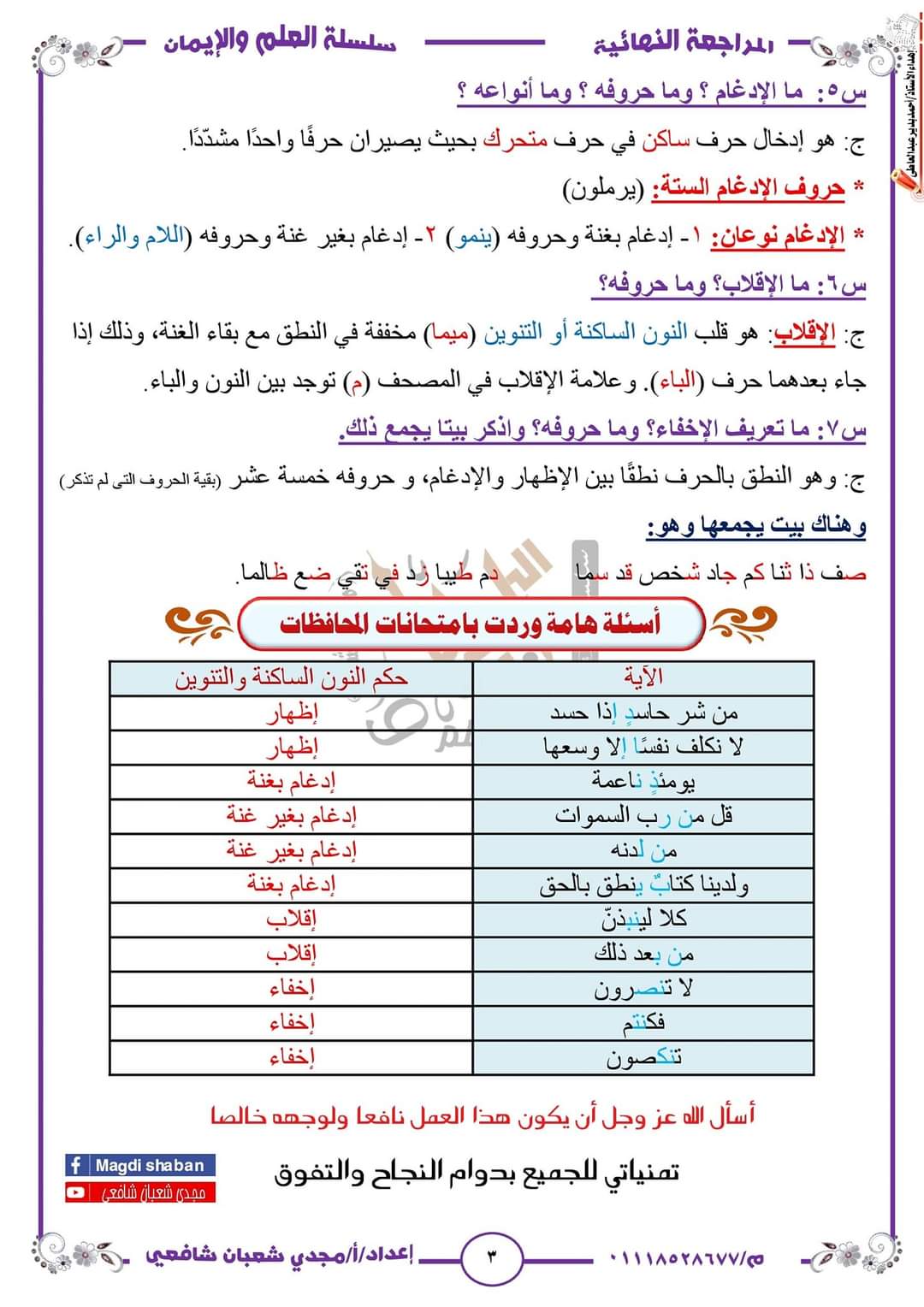المراجعة النهائية ( دين ) للصف الثالث الإعدادي
