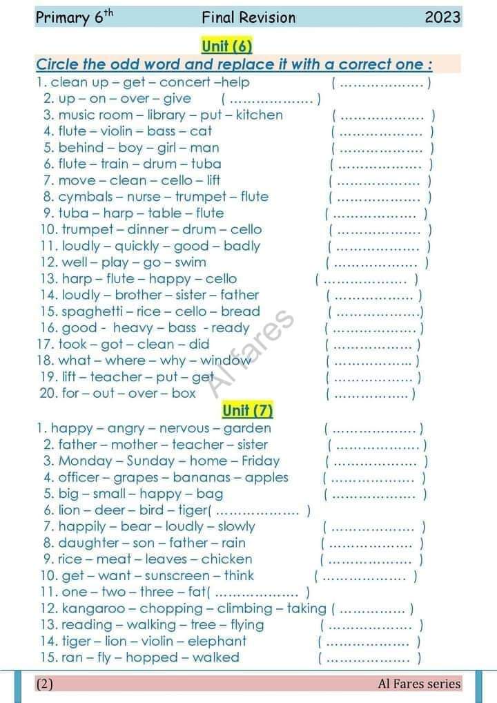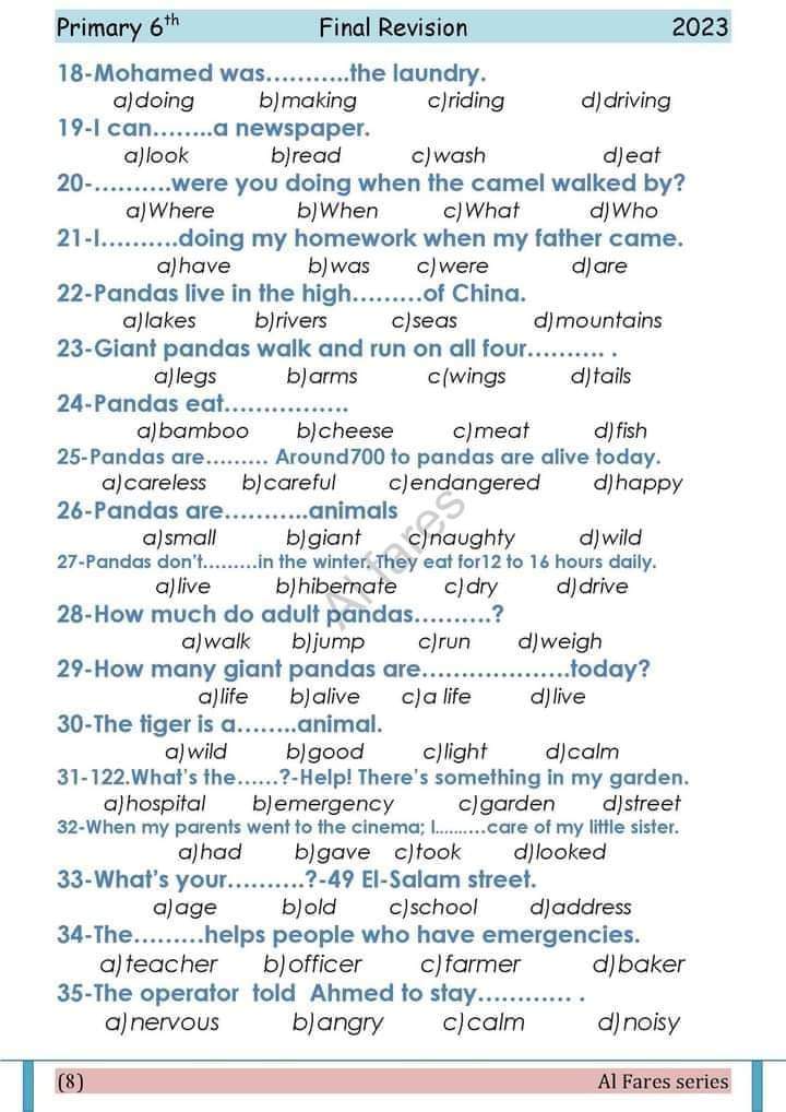 تحميل المراجعة النهائية لغة انجليزية الصف السادس الابتدائى الترم الثاني بالاجابات