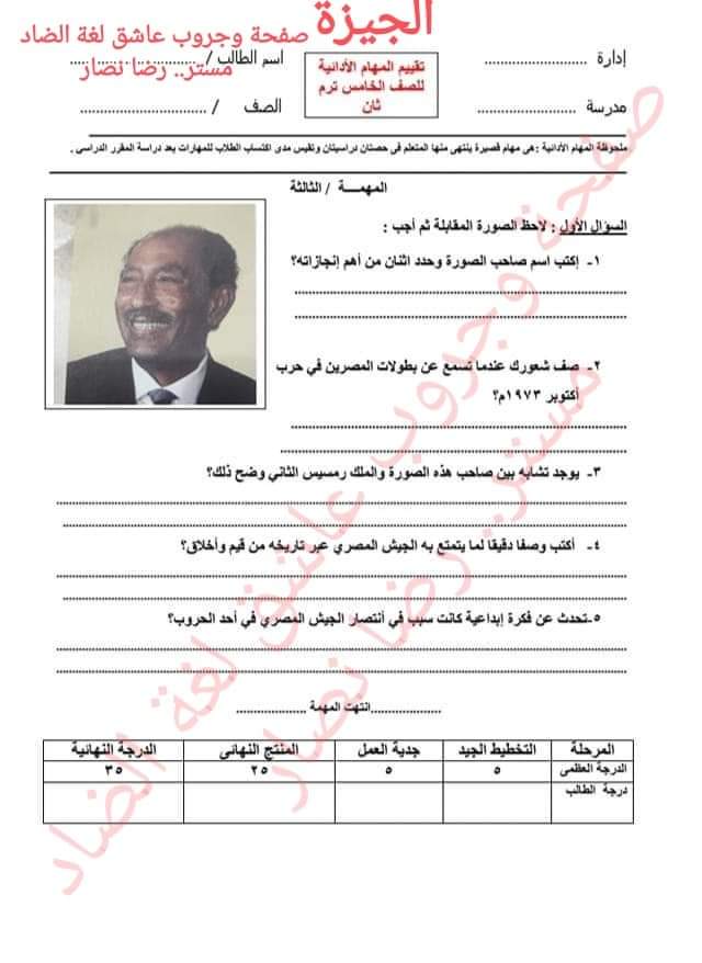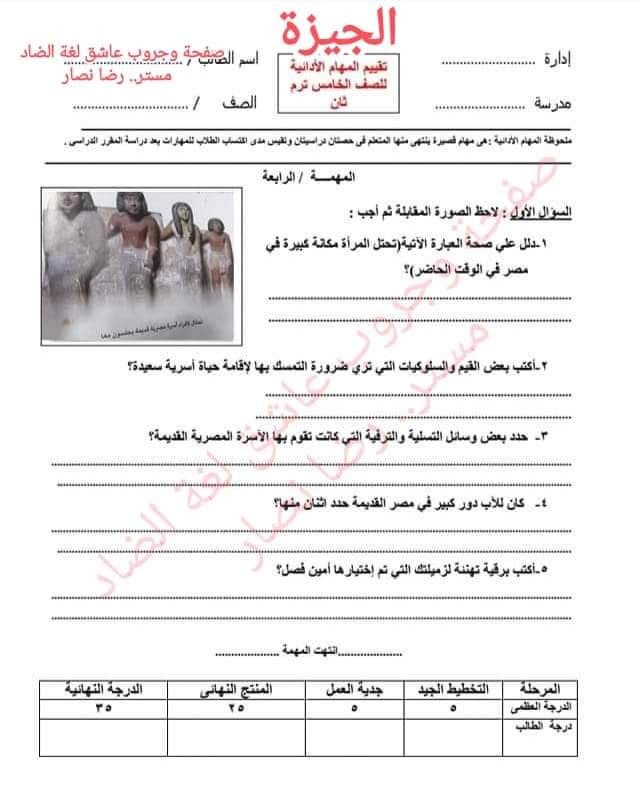 تحميل المهام الادائية الرسمية دراسات للصف الخامس الابتدائي محافظة الجيزة الترم الثاني
