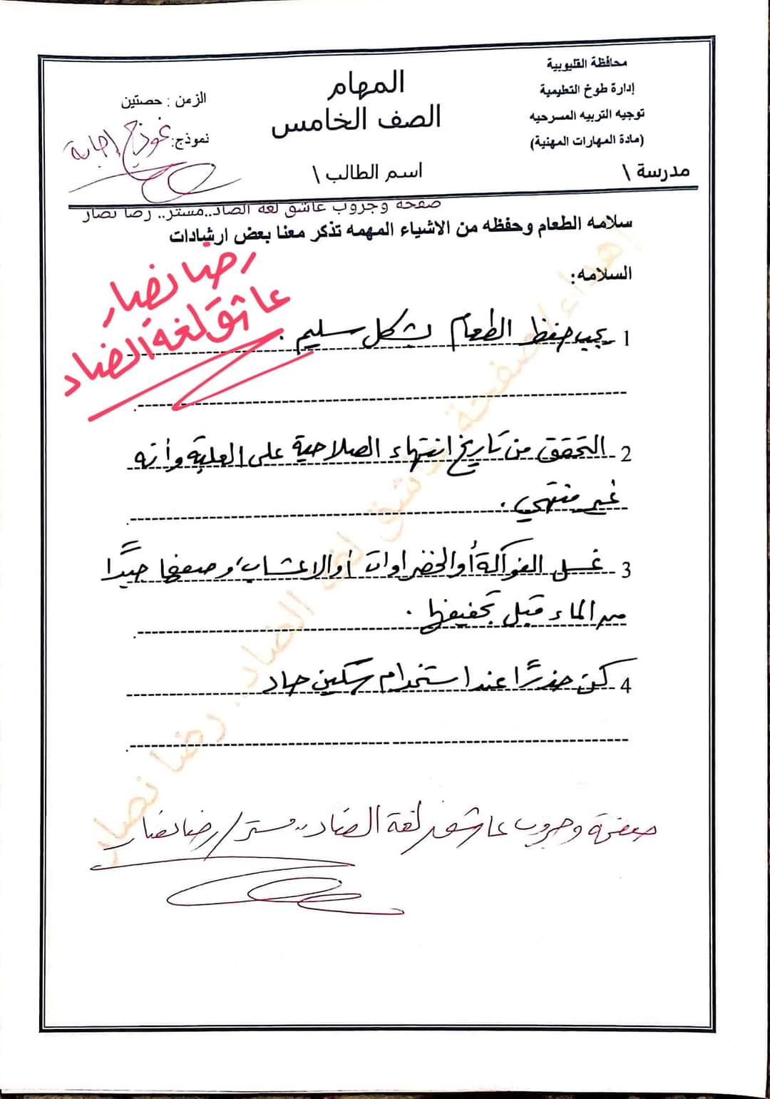 تحميل المهام الادائية الرسمية مهارات مهنية للصف الخامس الابتدائي محافظة القليوبية بالاجابات