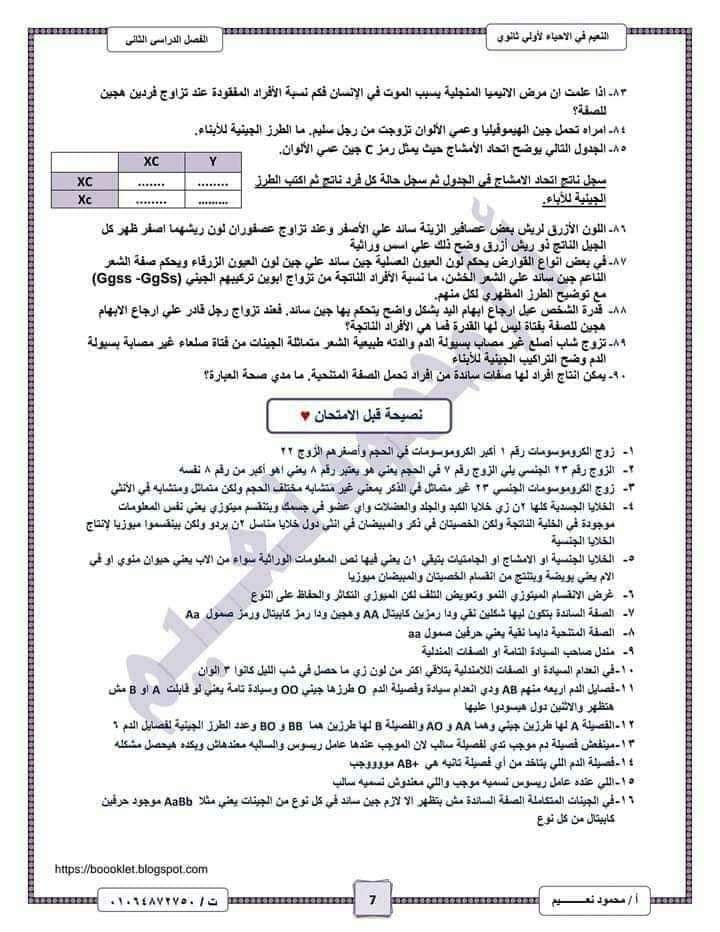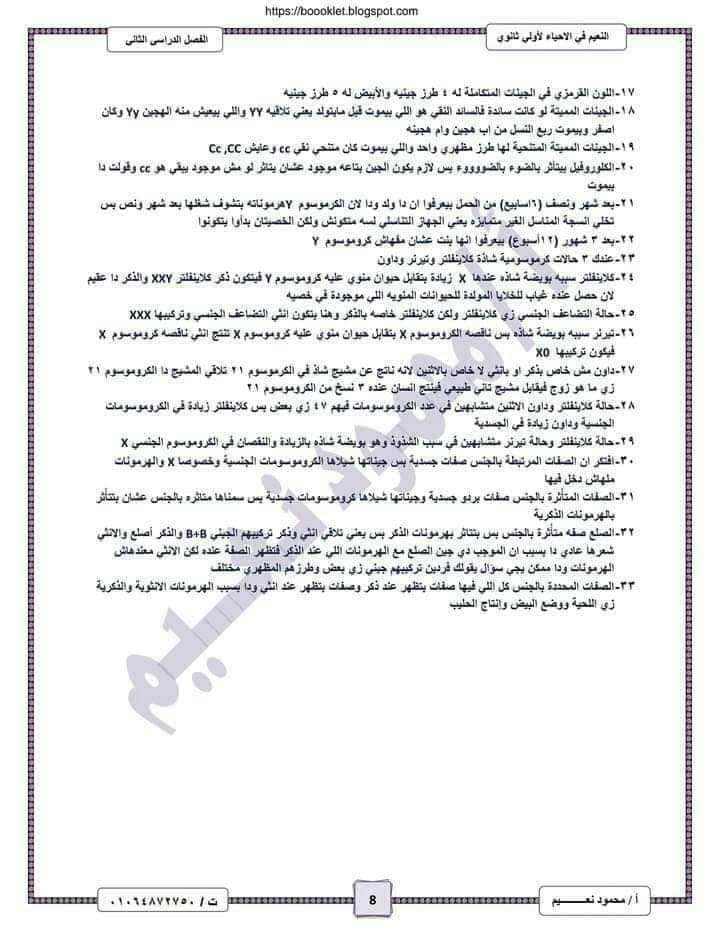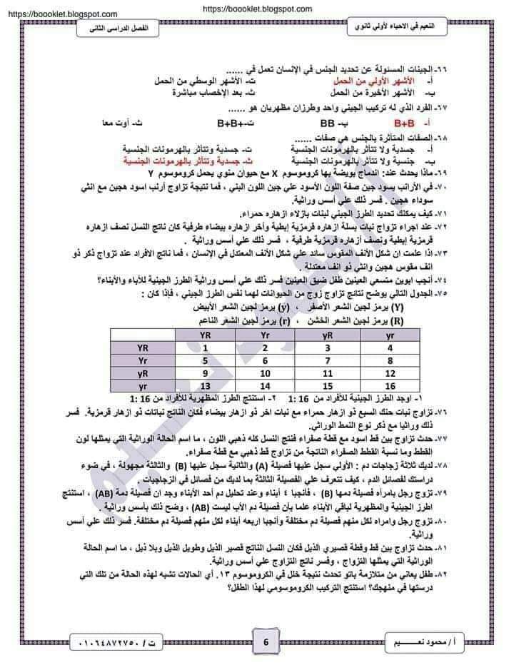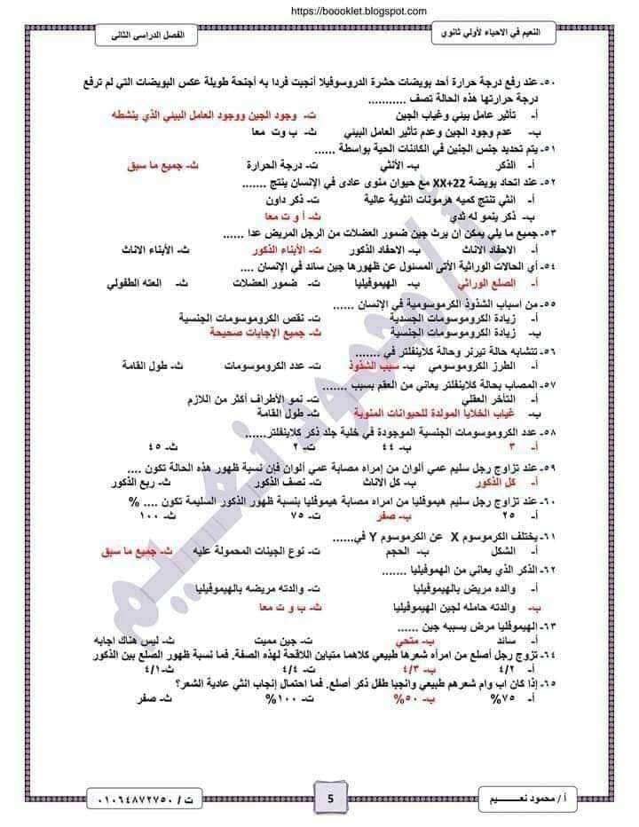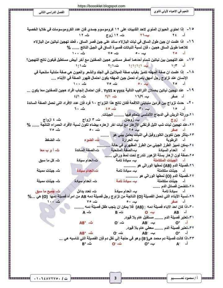 تحميل اهم اسئلة الأحياء بالاجابات للصف الأول الثانوي الترم الثاني