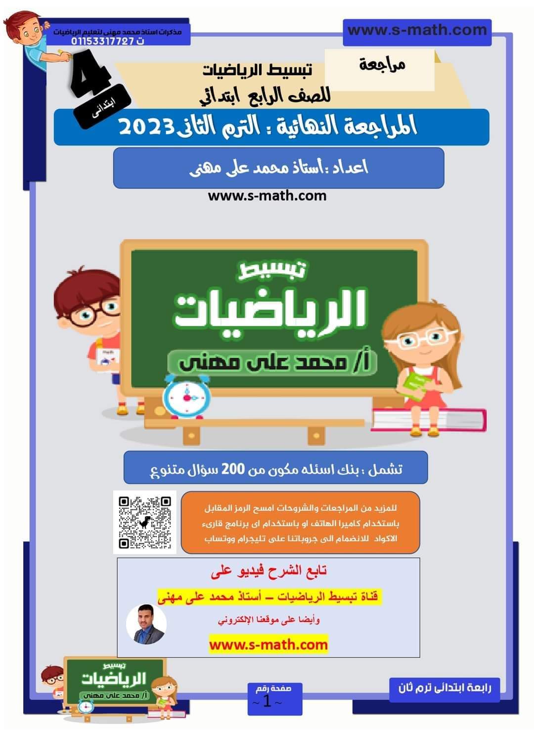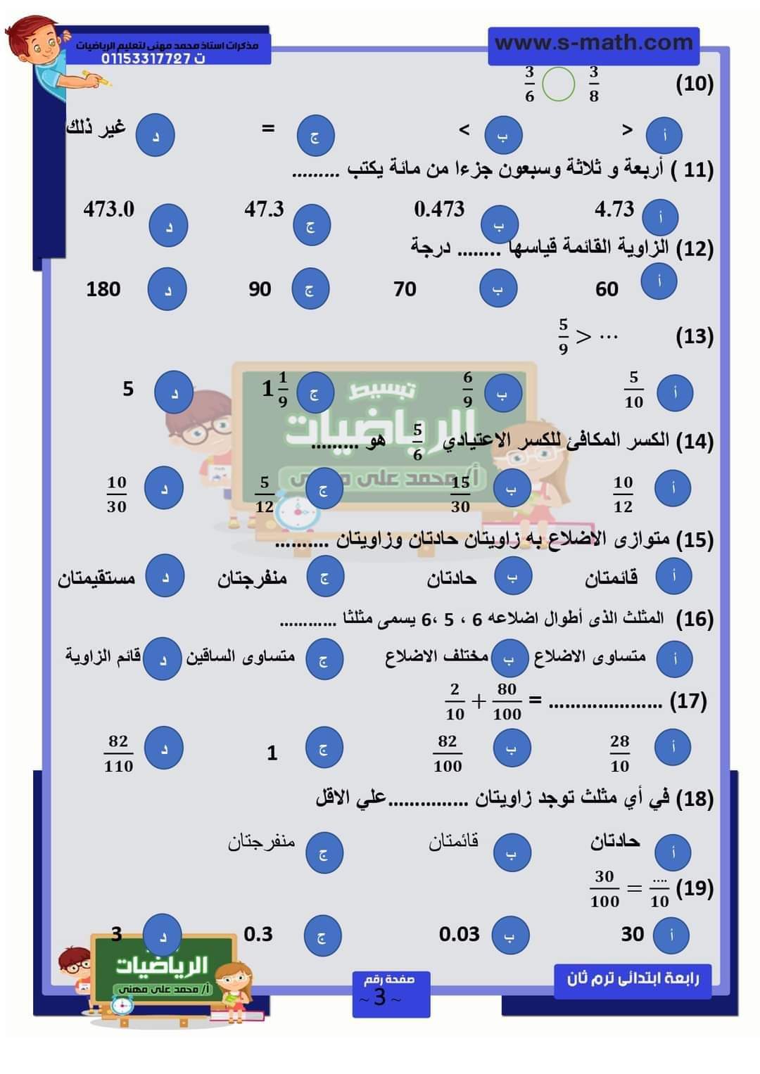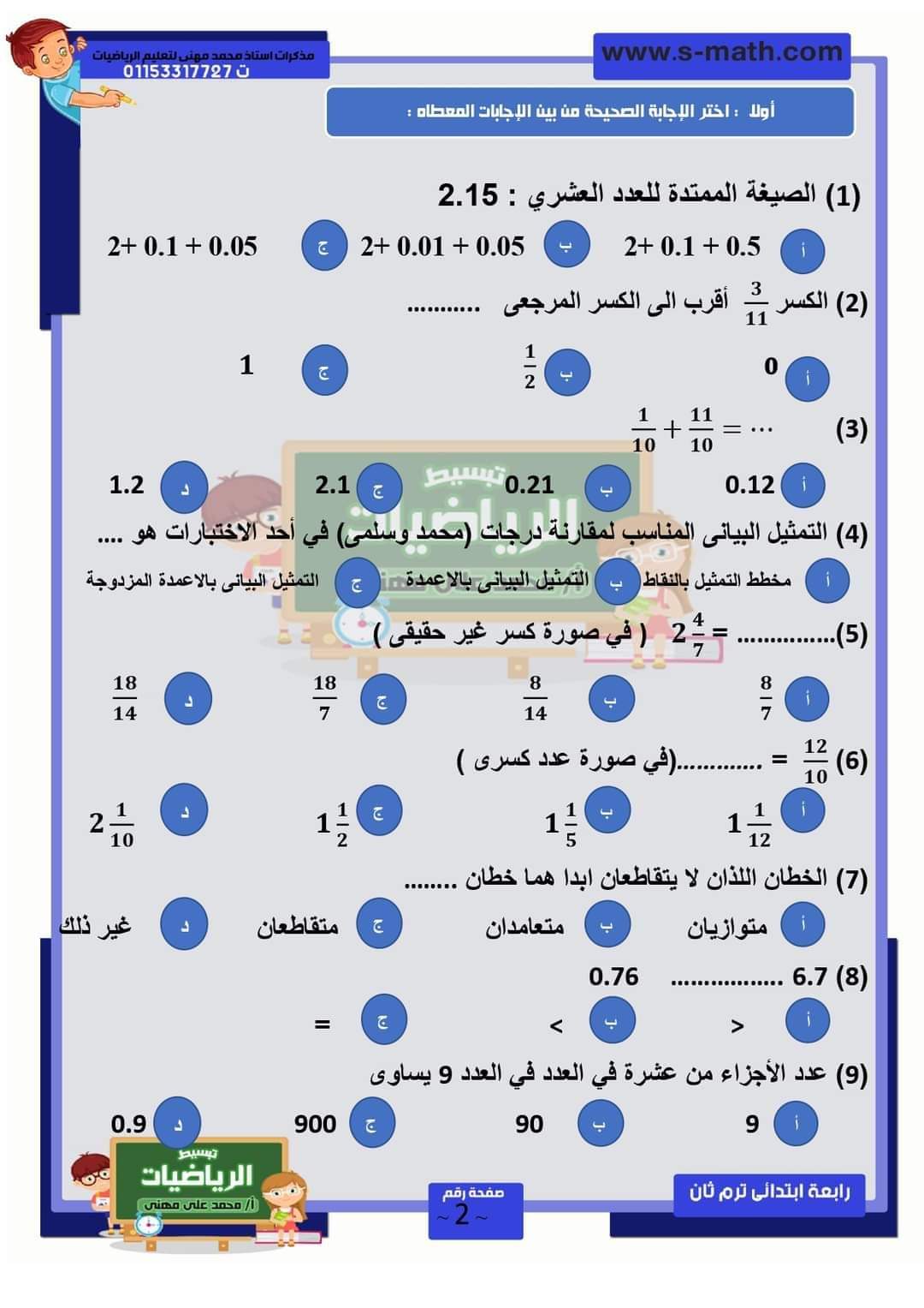 حصريا بالاجابات بنك اسئلة الرياضيات للصف الرابع الابتدائي الترم الثاني