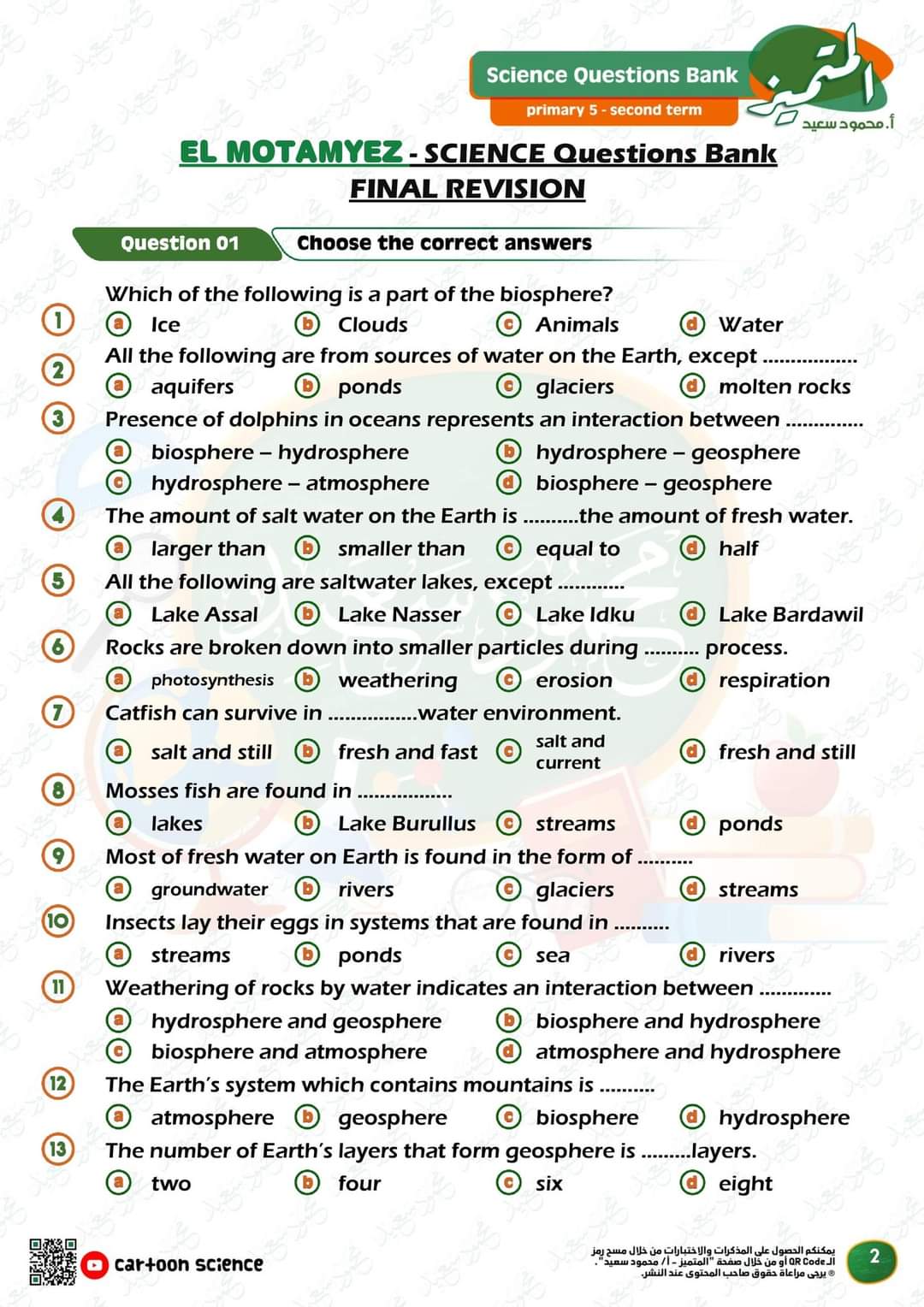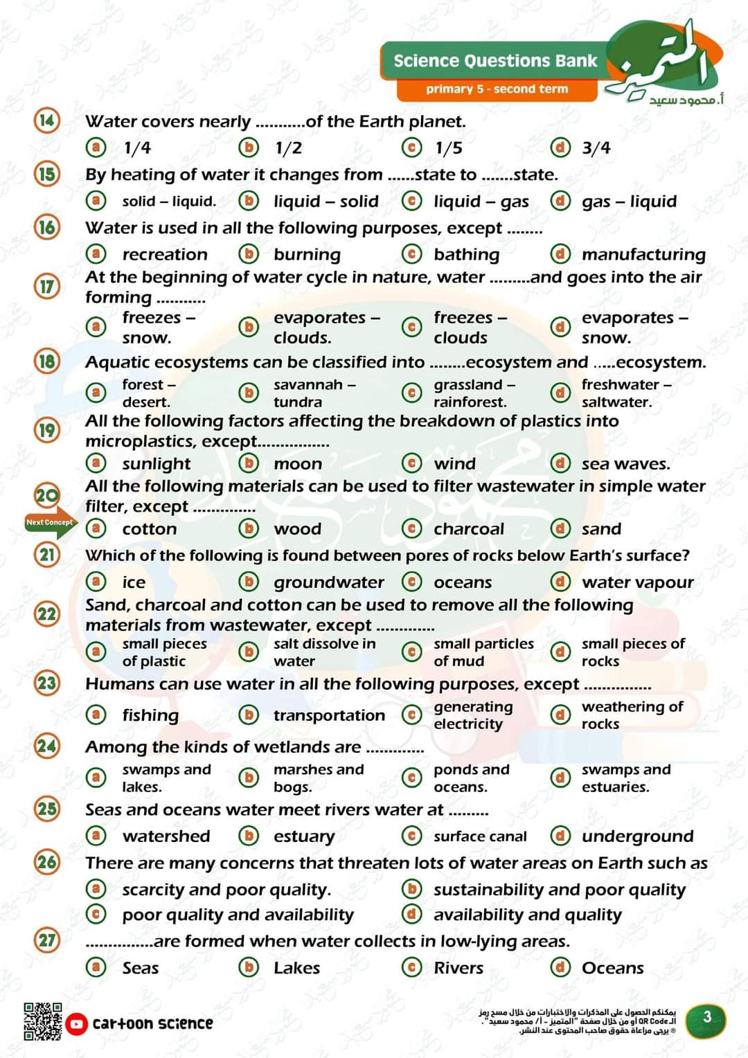 تحميل بنك اسئلة المتميز الساينس science الصف الخامس الابتدائي الترم الثاني 2023
