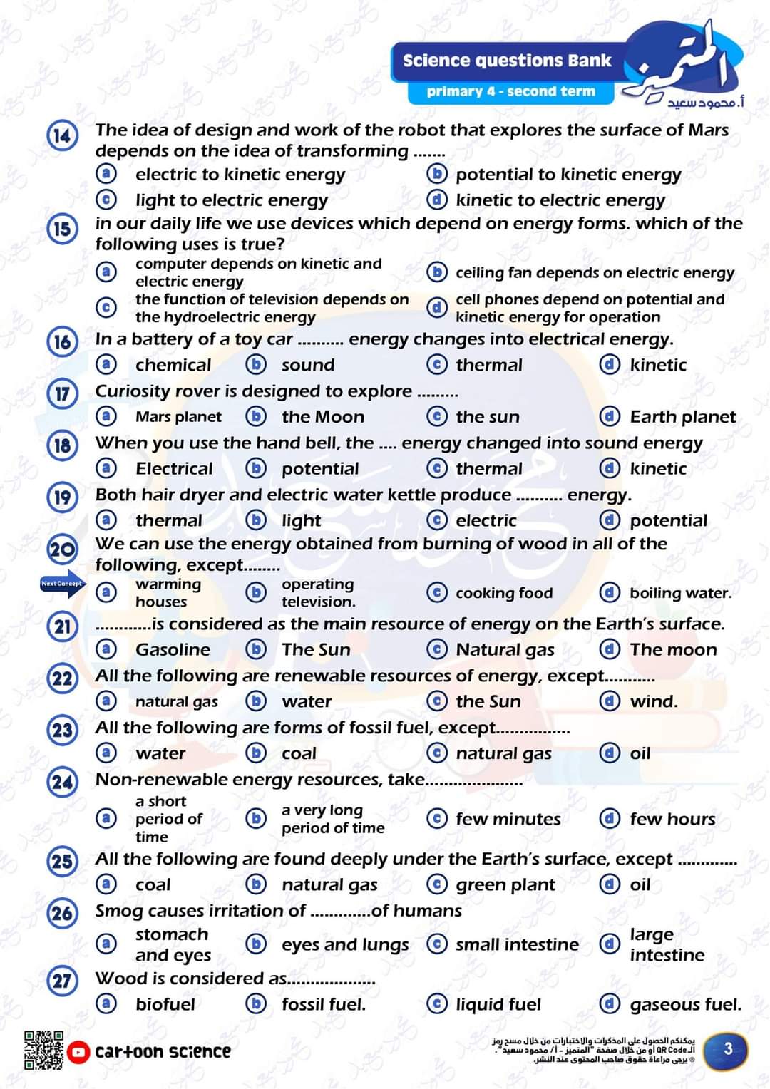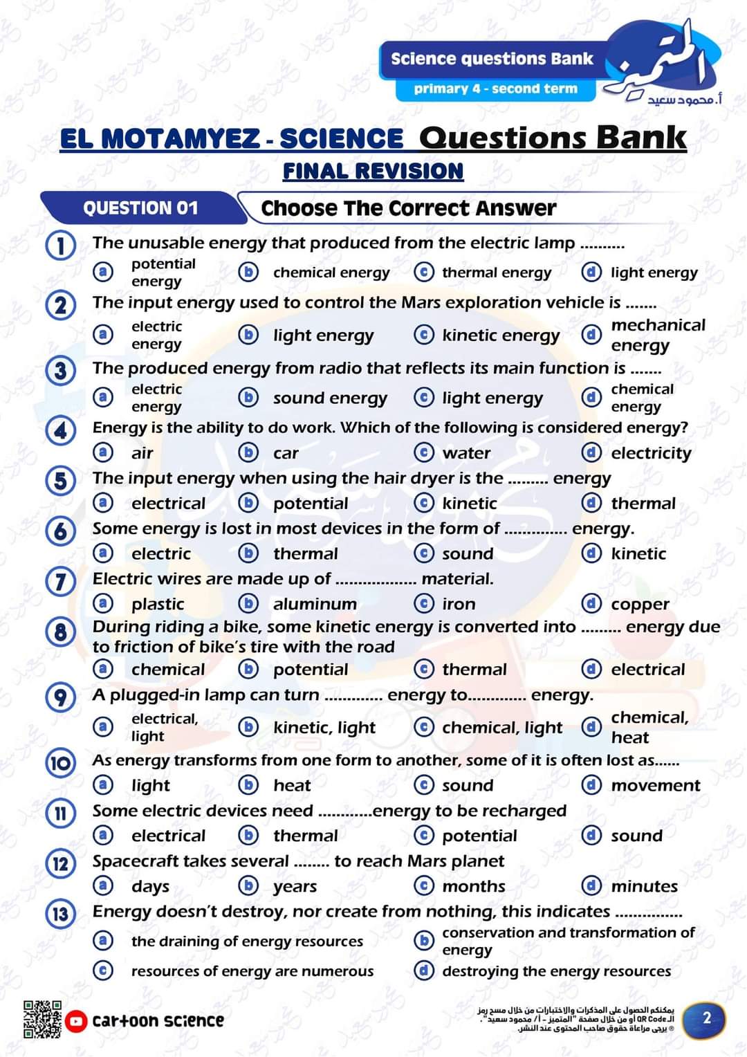 تحميل بنك اسئلة المتميز الساينس science الصف الرابع الابتدائي الترم الثاني 2023
