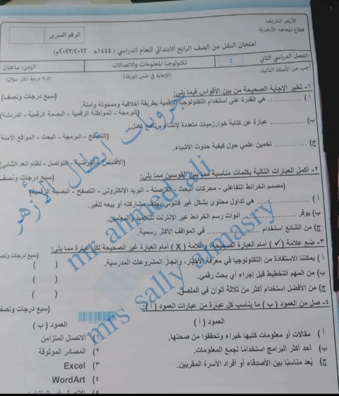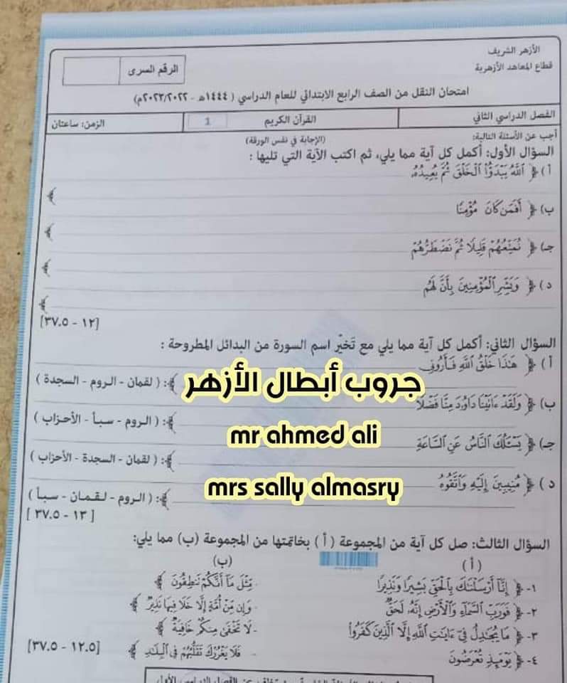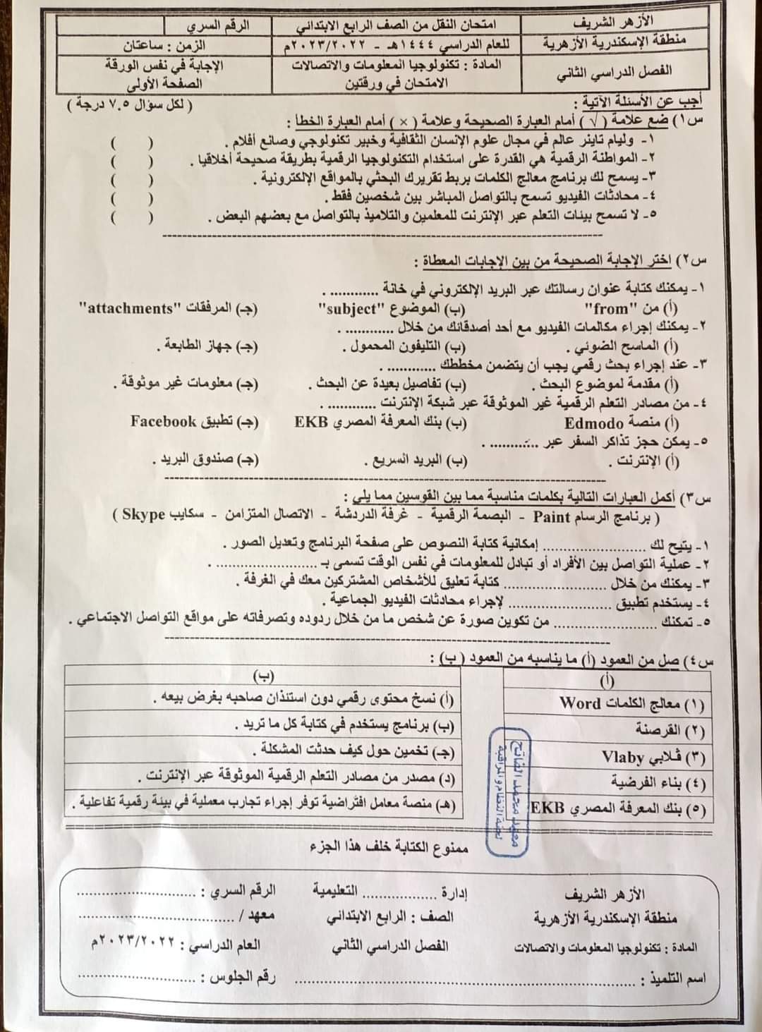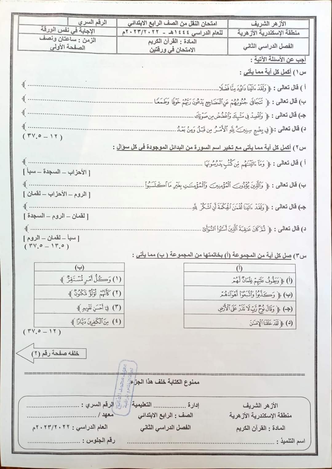 تحميل تجميع امتحانات الصف الرابع الابتدائي الأزهري الترم الثاني 2023 كل المواد