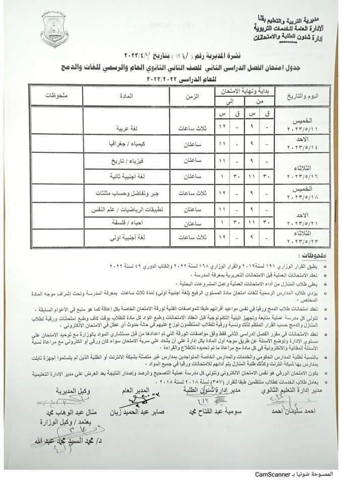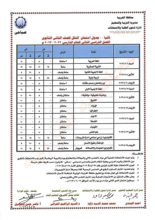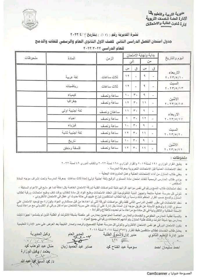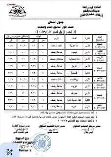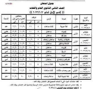 جدول امتحانات الترم الثاني 2023 للصفين الاول والثاني الثانوي محافظة الغربية