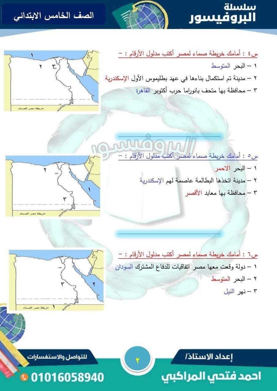 تحميل الخرائط المتوقعة للصف الخامس الابتدائي الترم الثاني بالاجابات