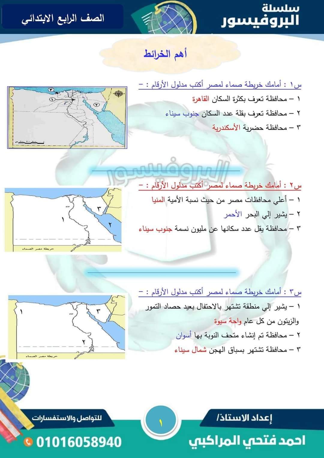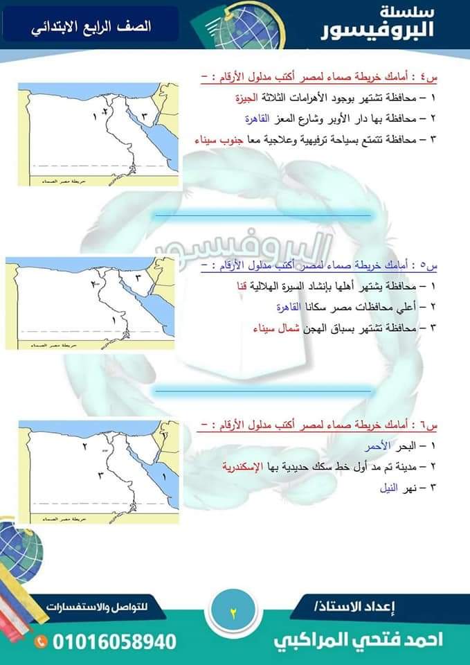 تحميل الخرائط المتوقعة للصف الرابع الابتدائي الترم الثاني بالاجابات