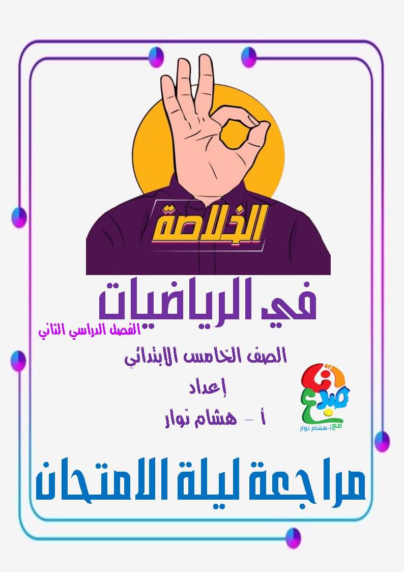 المراجعة العامة والنهائية للفصل الدراسي الثاني مادة الرياضيات للصف الخامس الابتدائي