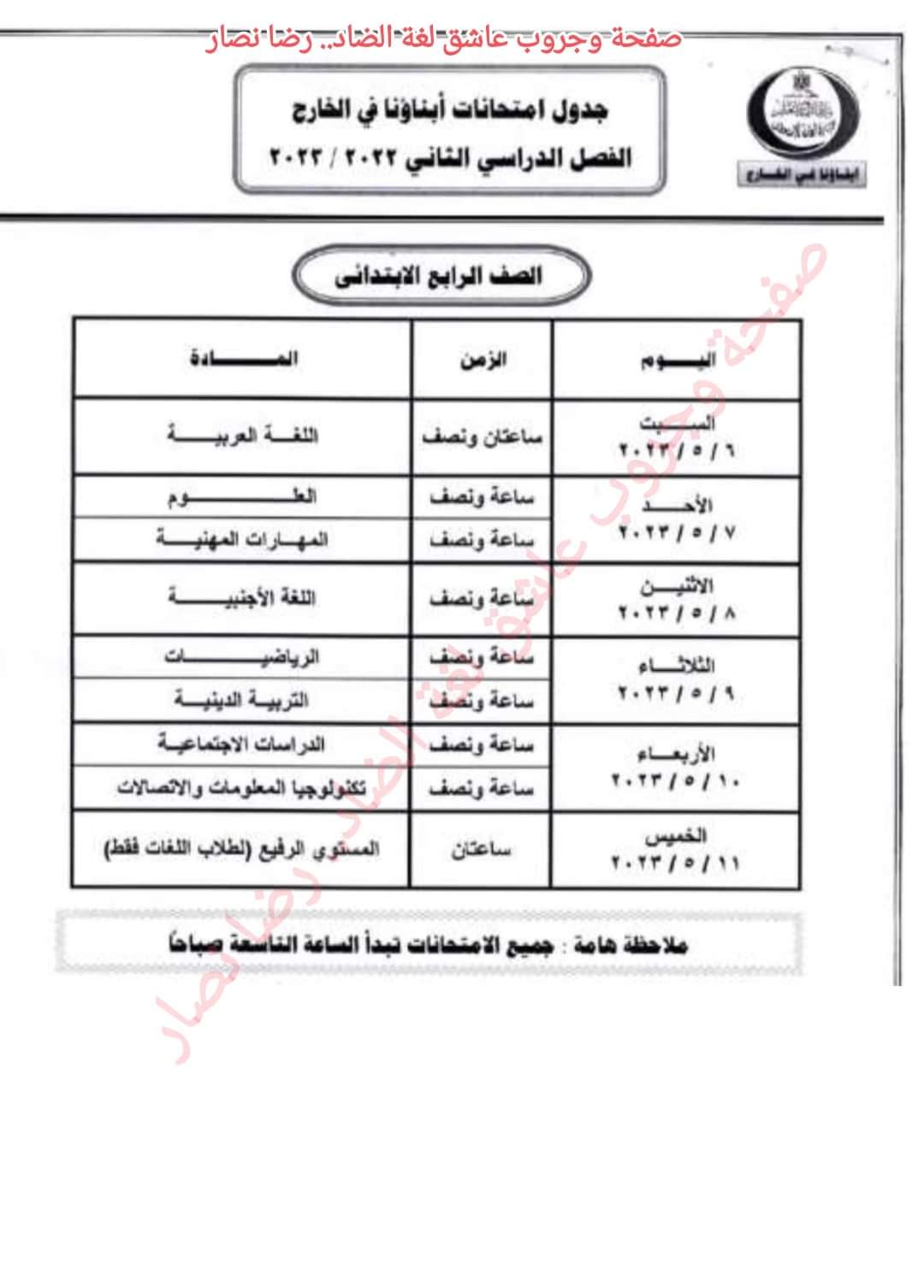 تحميل جدول امتحانات ابنائنا في الخارج لكل الصفوف الترم الثاني 2023
